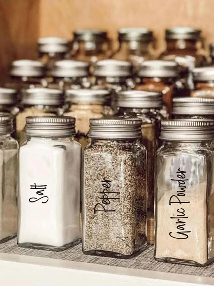1 Набор этикеток для пищевых контейнеров, 8 листов, прозрачные водонепроницаемые наклейки, этикетки для пищевых банок, наклейки для кладовой, специй, кухонные наклейки K1m4
