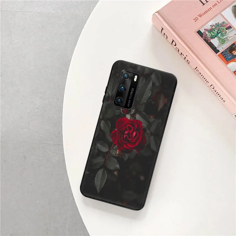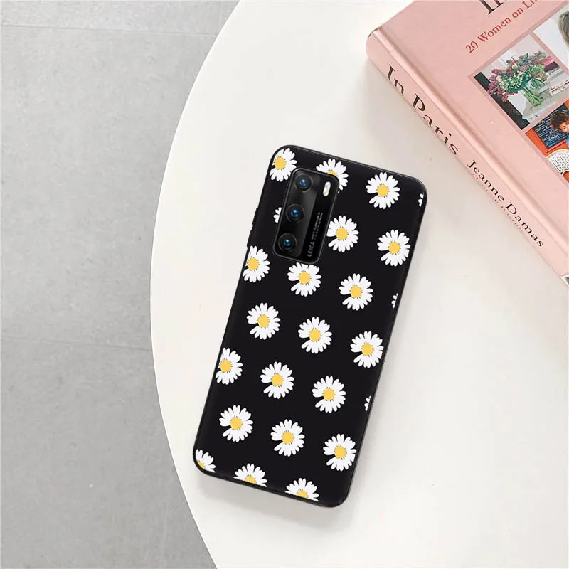 Чехол для телефона Huawei P50 P40 Lite P30 Pro P20 P10 P-Smart Z 2021 Y6 Y7 2019 Y9, черный корпус, чехол в стиле ретро, ромашка, роза, цветочные листья