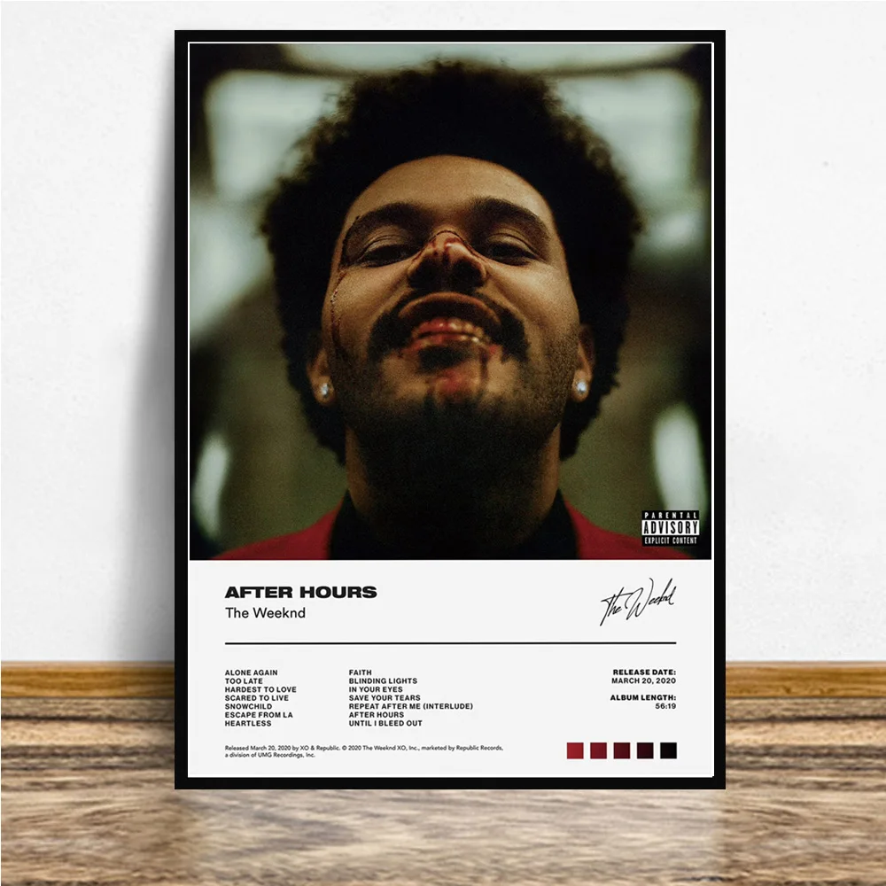 GX359 The Weeknd музыкальный альбом после часов, Обложка, список отслеживания, плакат, печать на холсте, картина на стену, картина для гостиной, домашний декор