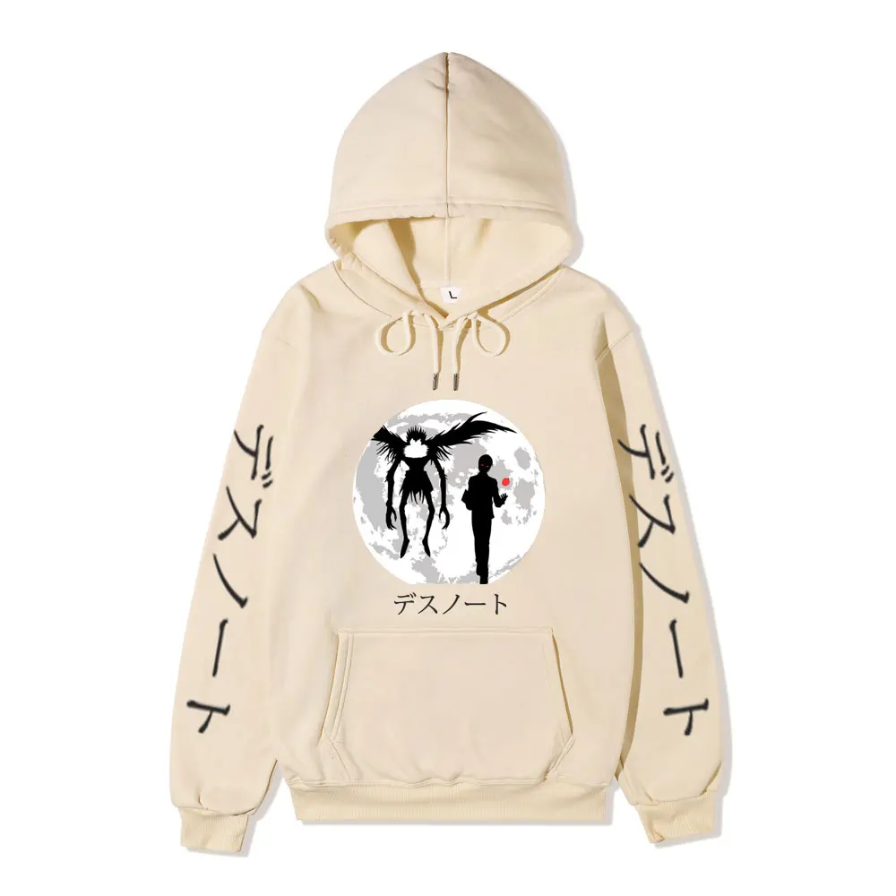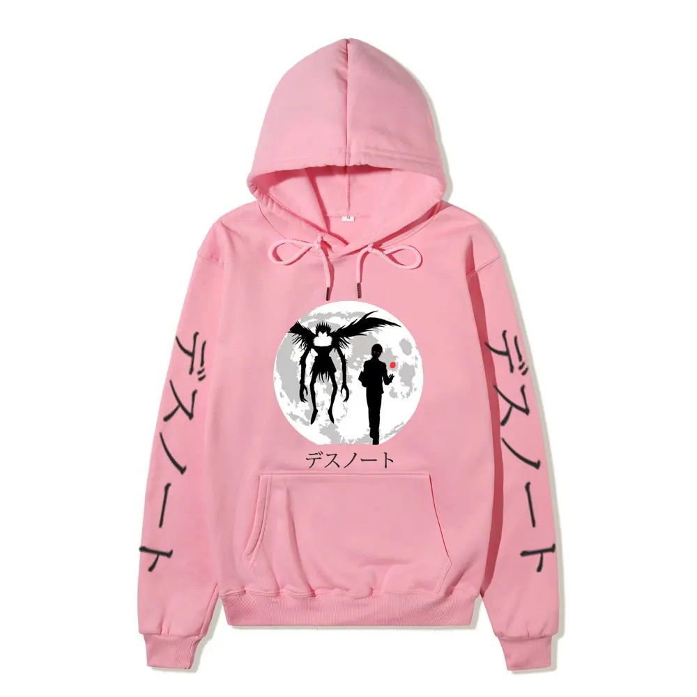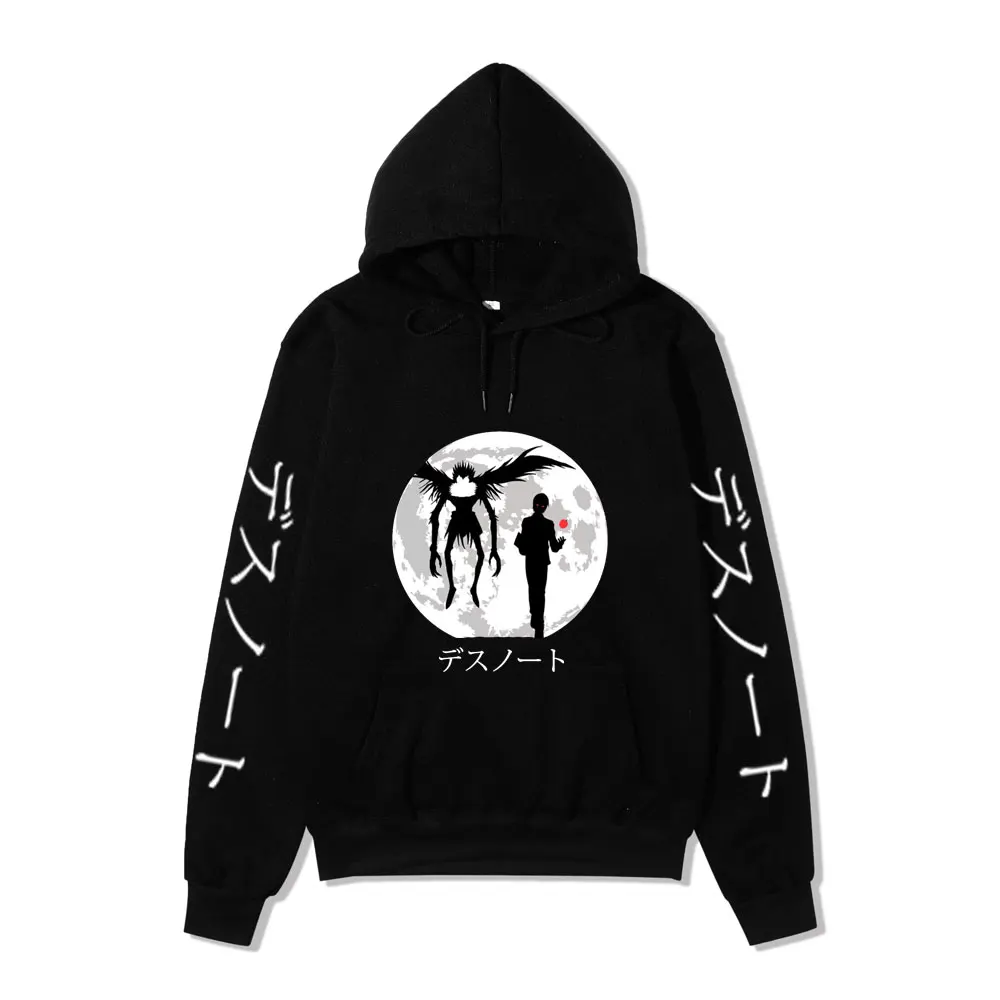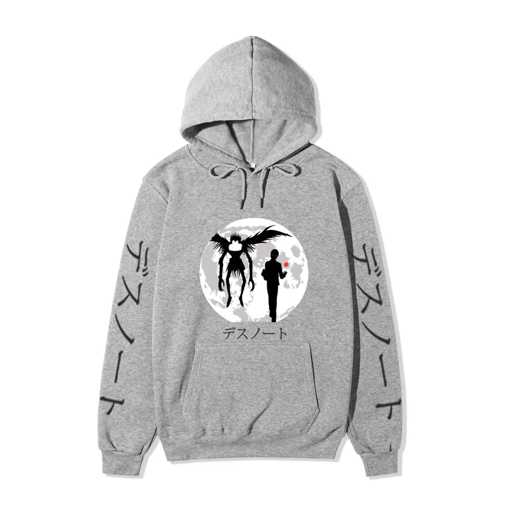 Толстовка мужская оверсайз с капюшоном Death Note, худи унисекс с японским аниме принтом, уличная одежда, флисовая повседневная кофта