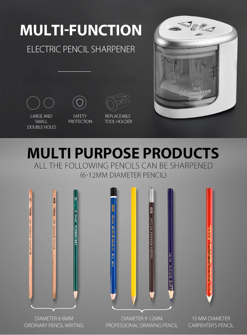 Автоматическая точилка для карандашей, электрическая точилка с двумя отверстиями, переключатель для карандашей 6-12 мм, милые школьные принадлежности, новинка 2022