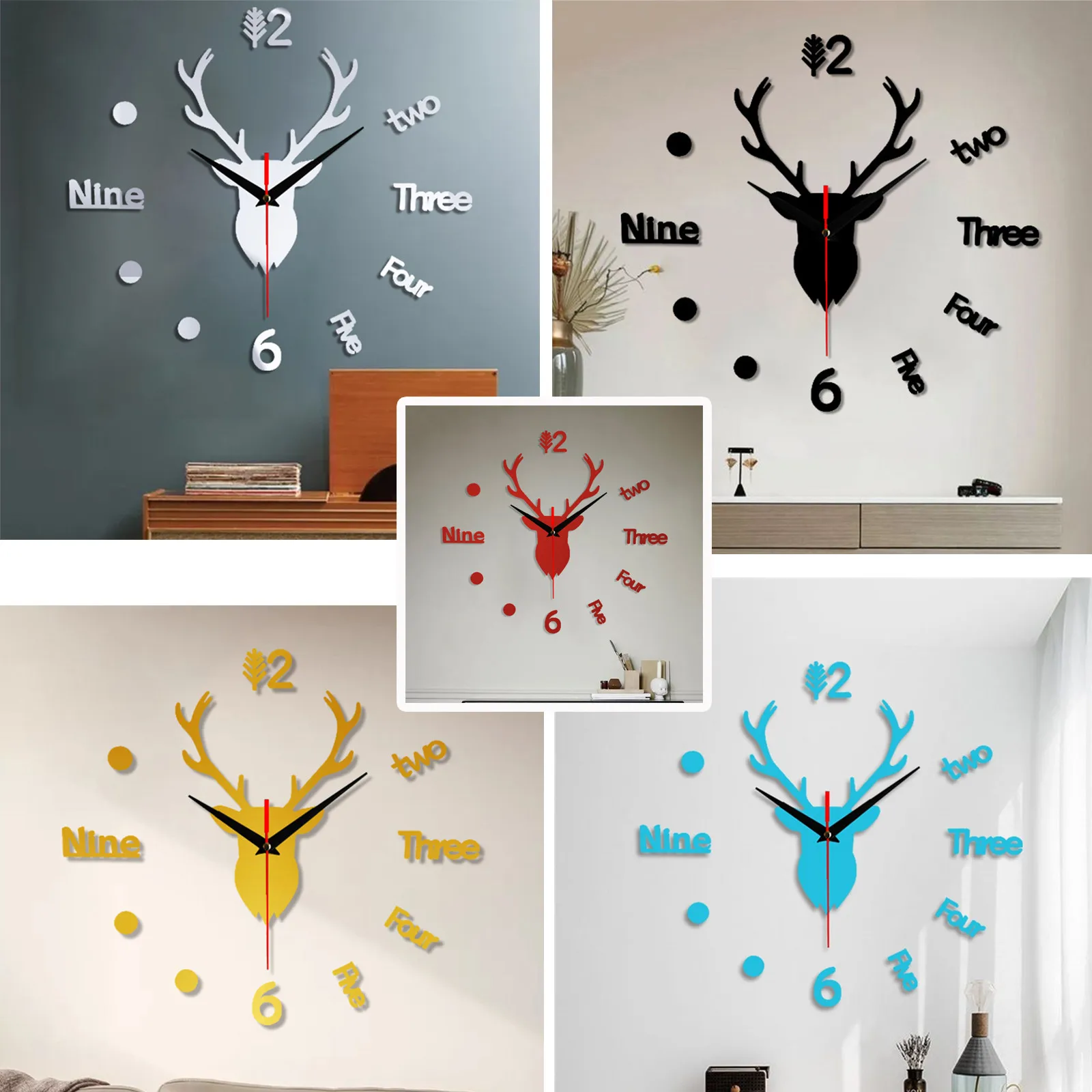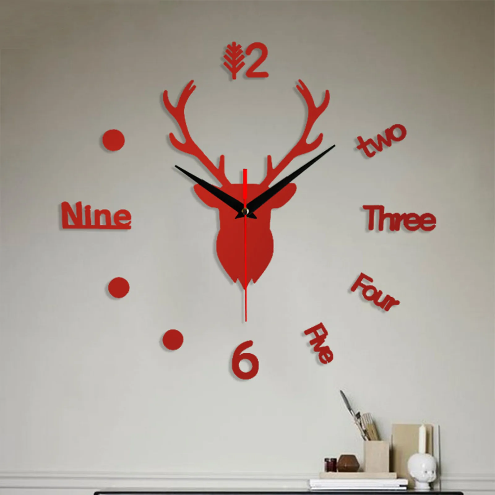 Олень Голова большие настенные часы бескаркасные DIY настенные бесшумные часы 3D зеркальная поверхность наклейка Украшения дома и офиса