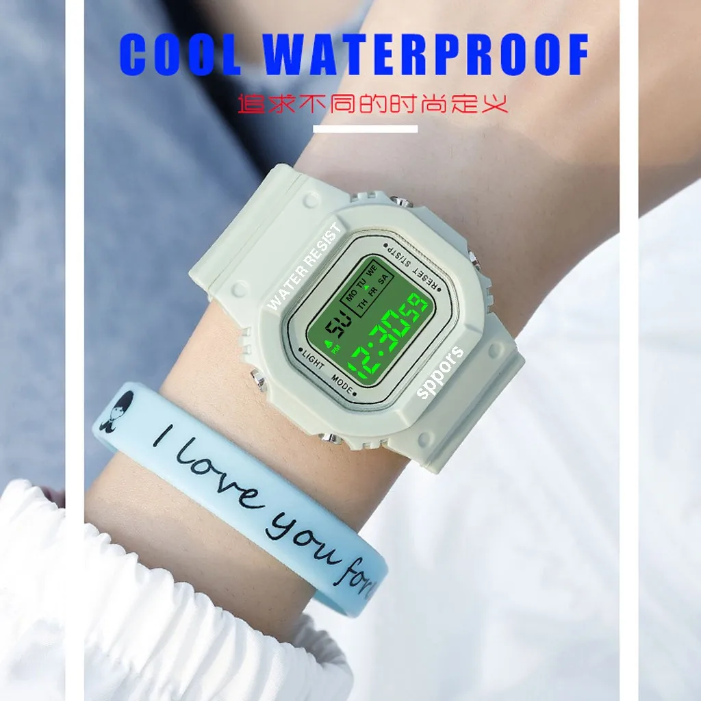 Часы наручные женские с ЖК-дисплеем, простые и стильные водонепроницаемые цифровые спортивные с резиновым ремешком, с датой и секундомером, креативный модный подарок