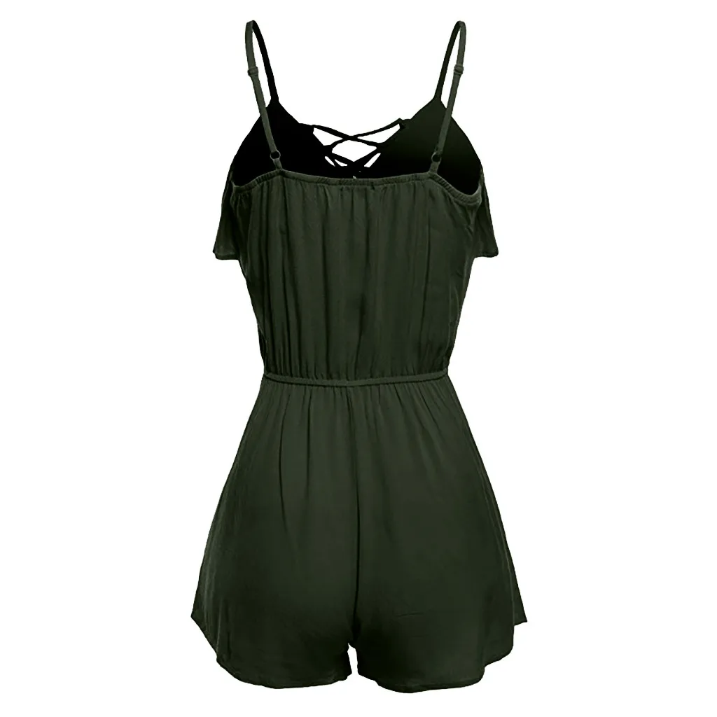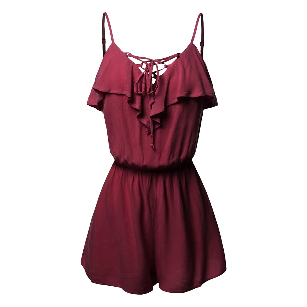 Женский короткий комбинезон в стиле бохо, элегантный винтажный повседневный комбинезон большого размера без рукавов с оборками спереди, одежда для женщин на лето