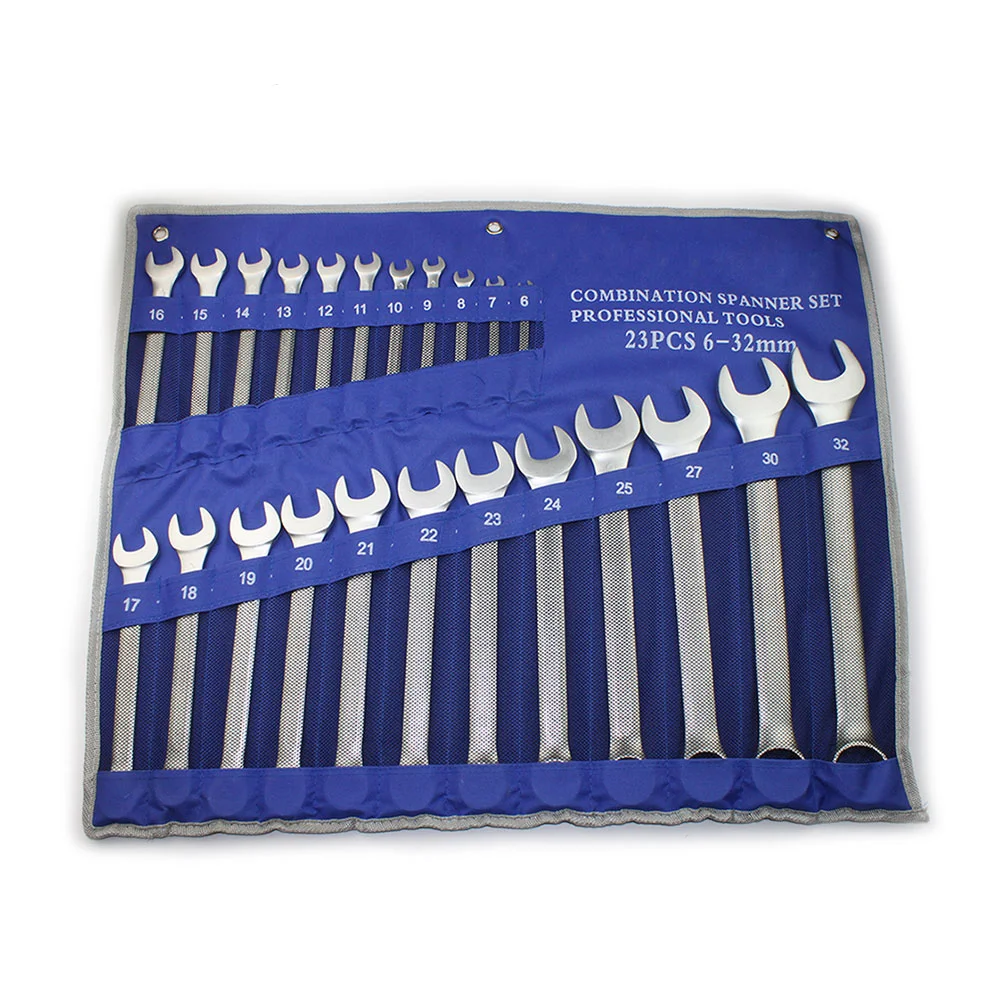 Набор комбинированных ключей 23 шт., кольцевой ключ, открытый торцевой гаечный ключ, набор ручных инструментов с мешочком для хранения хромового ванадия