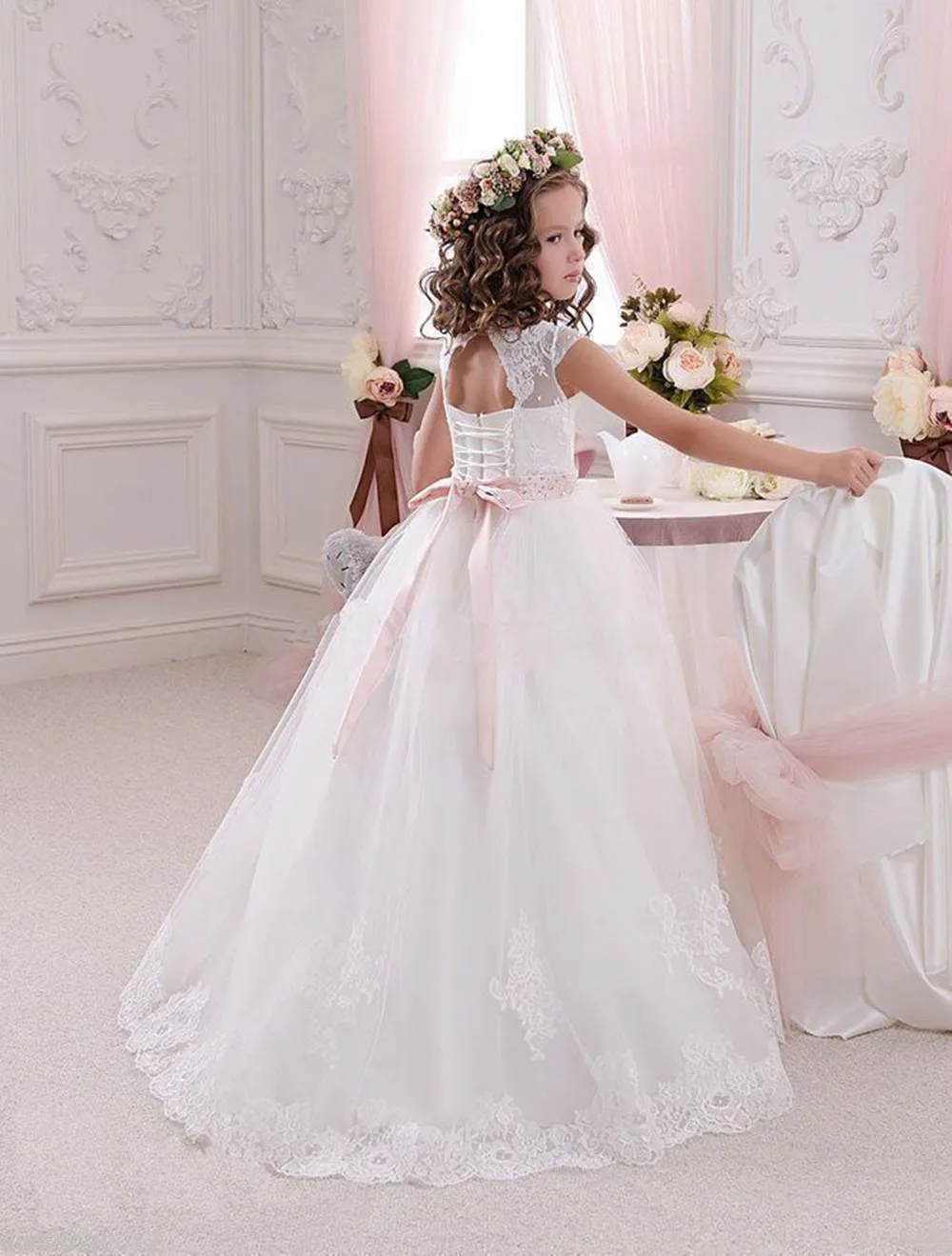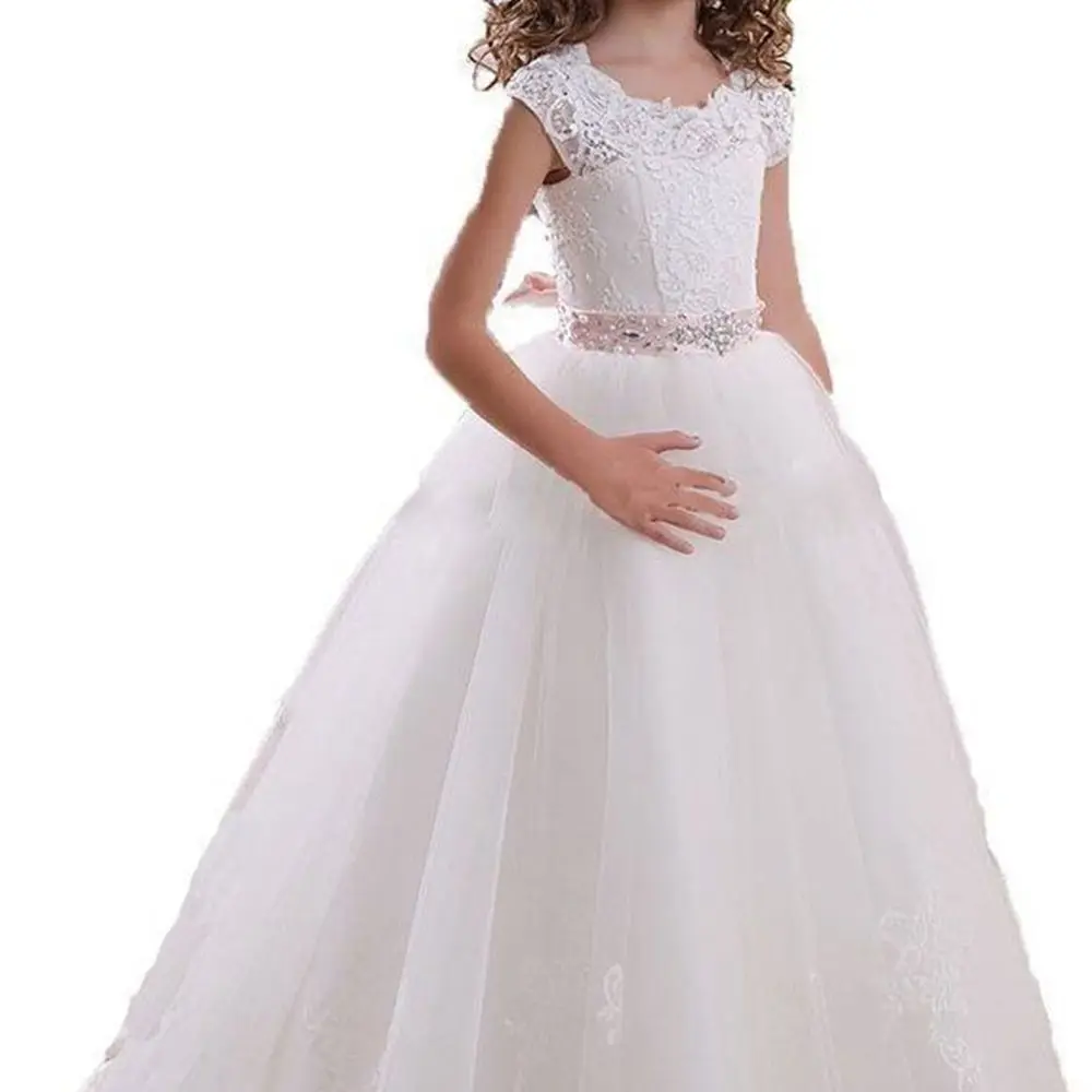 Весенние платья с цветочным принтом для девочек на свадьбу, винтажные кружевные сетчатые платья с драгоценным воротником и поясом для маленьких девочек на день рождения, платья для первого причастия