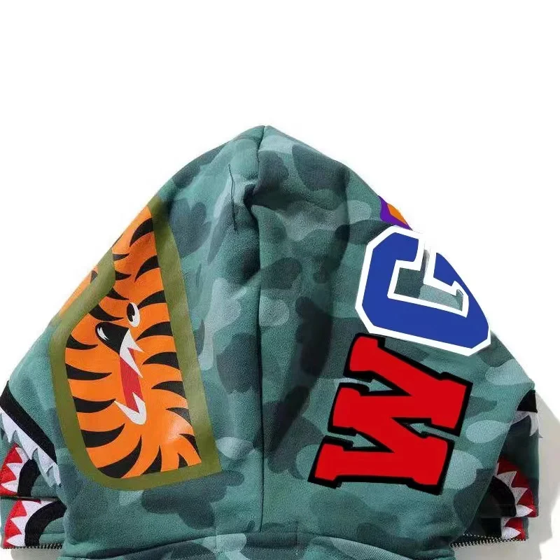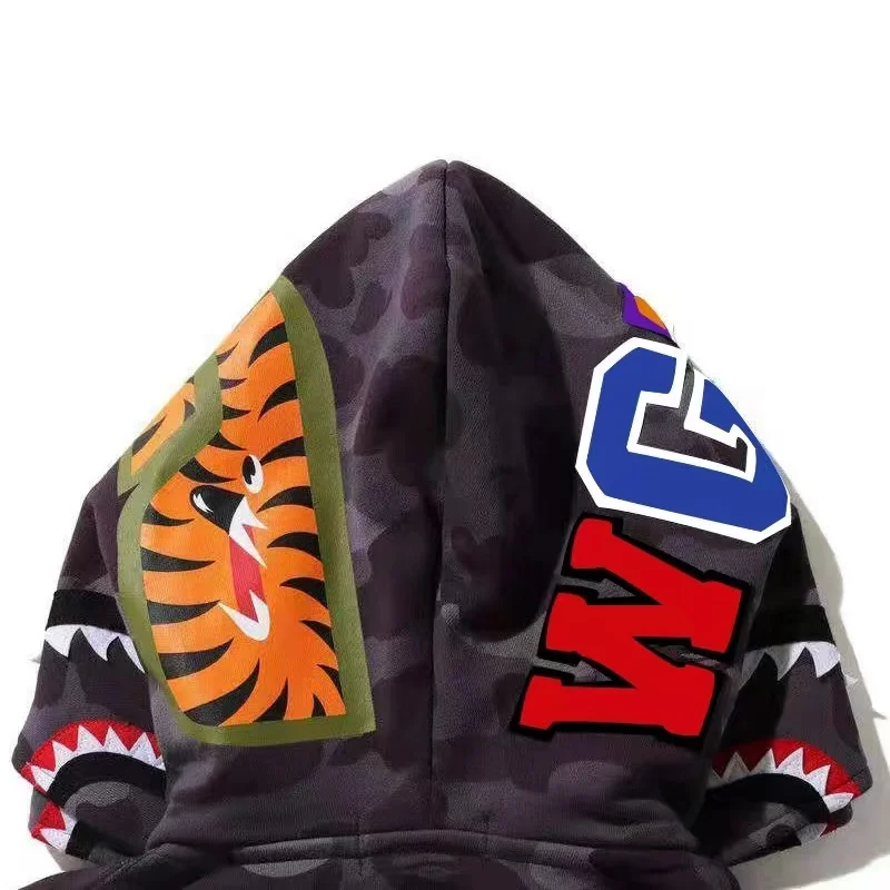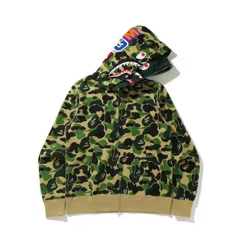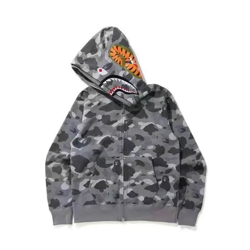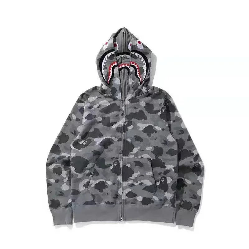 Мужская и Женская Классическая камуфляжная Толстовка Bape с капюшоном в виде акулы, Высококачественная спортивная куртка на молнии, худи в стиле хип-хоп Harajuku Plus Y2K