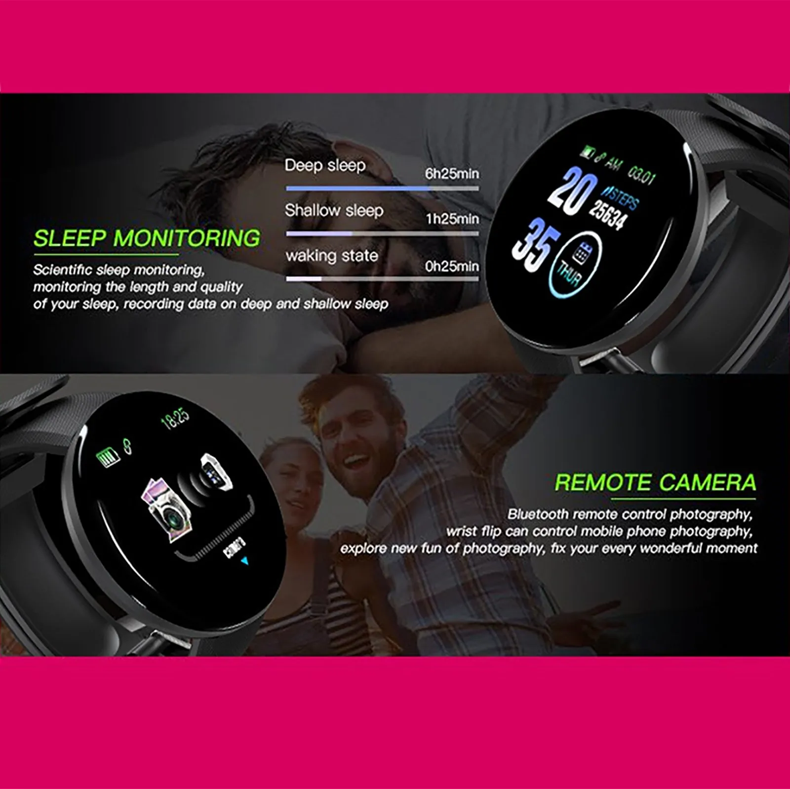 Умные часы D18S для мужчин и женщин, фитнес-трекер с тонометром, пульсометром, шагомером, модные часы, спортивные водонепроницаемые умные часы