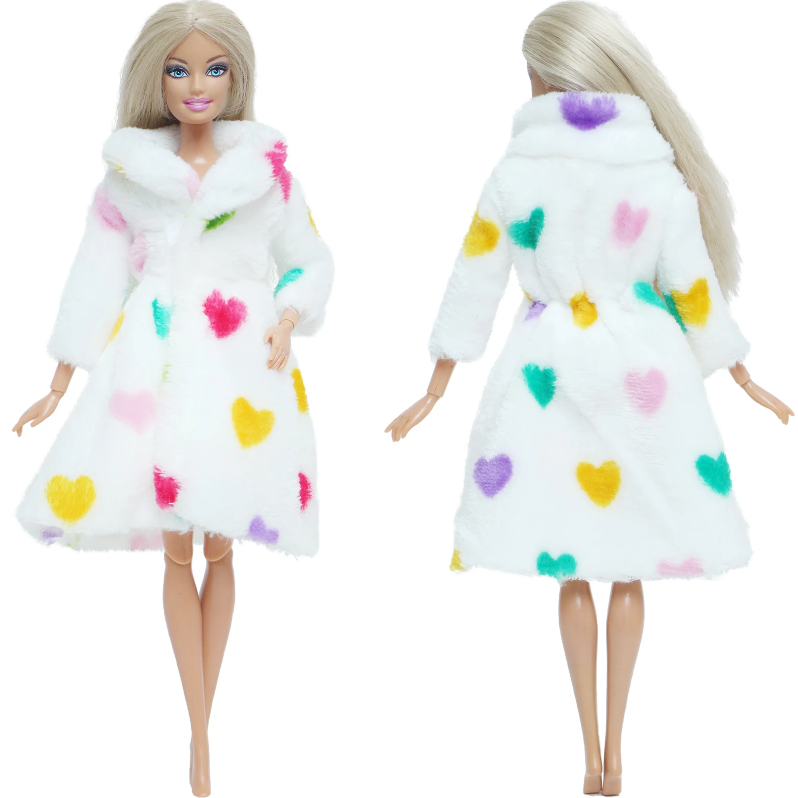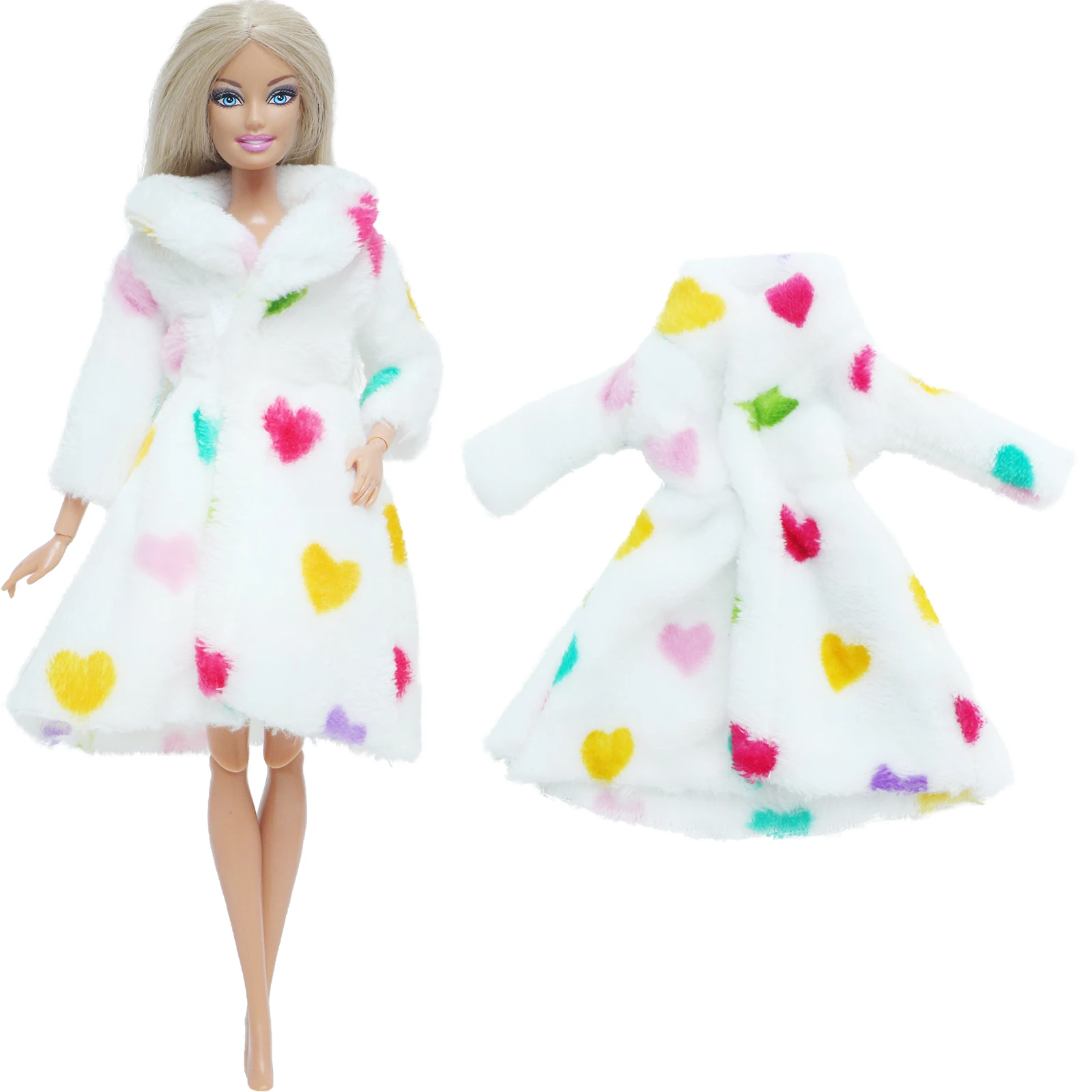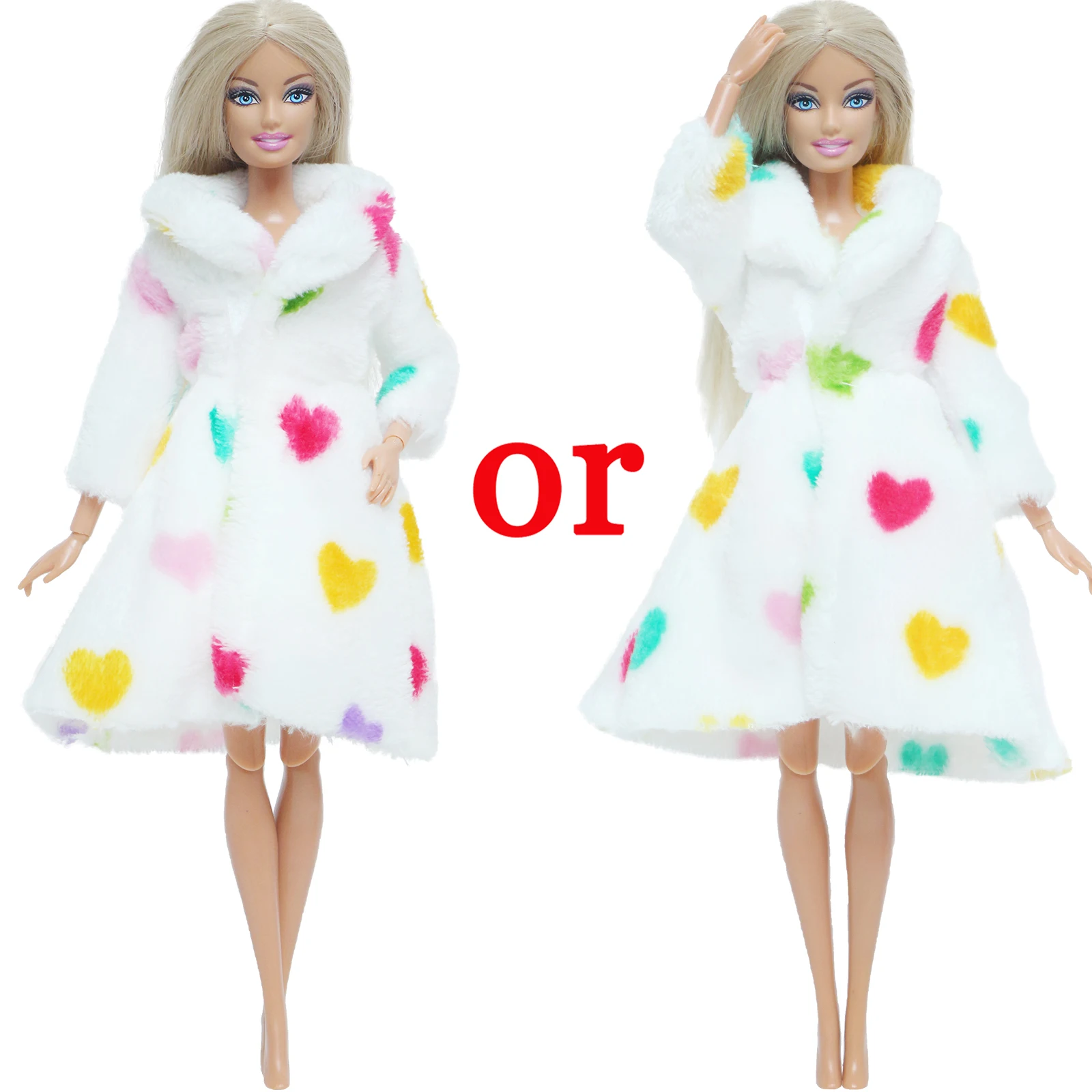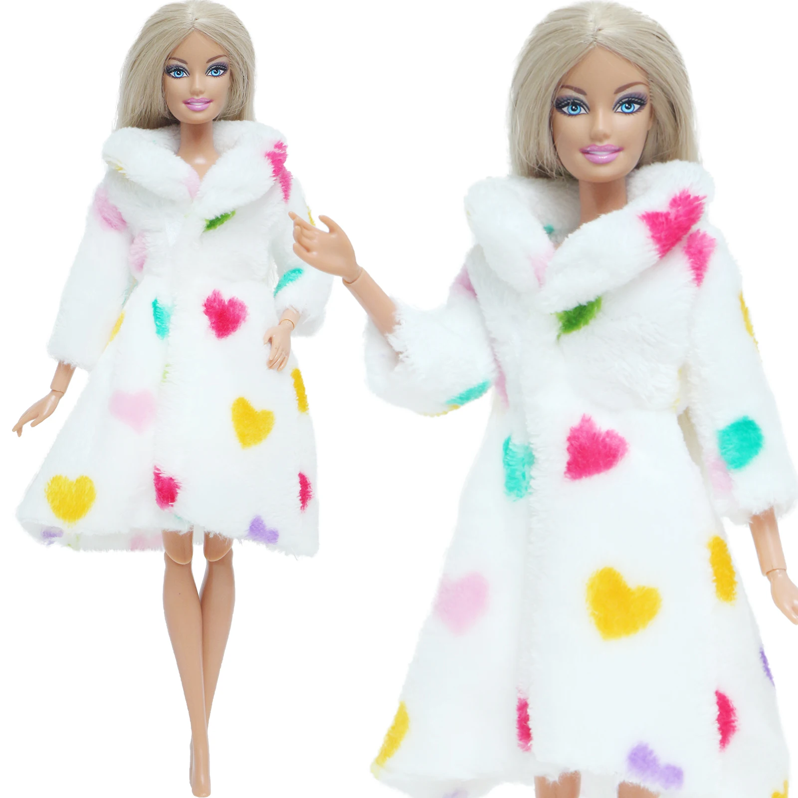 Плюшевое пальто BJDBUS, красочный узор сердца, мягкое меховое платье, наряд, Зимняя Теплая Одежда для куклы Барби, аксессуары для кукольного домика, игрушка для детей