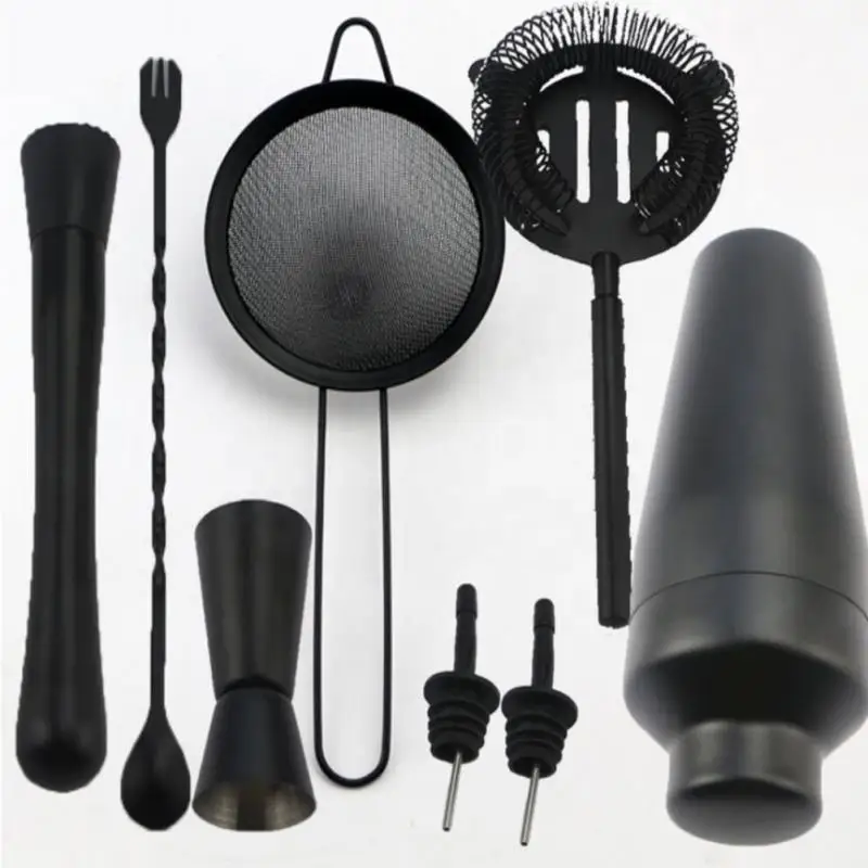 8 шт.компл. коктейльный шейкер 600 мл из нержавеющей стали, матовый черный шейкер для вина, Миксер для бара, вечевечерние, аксессуары для бара