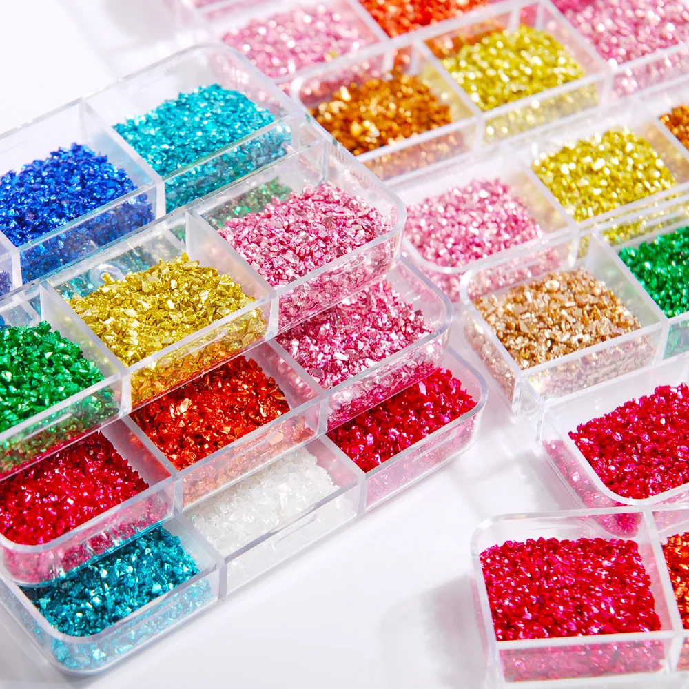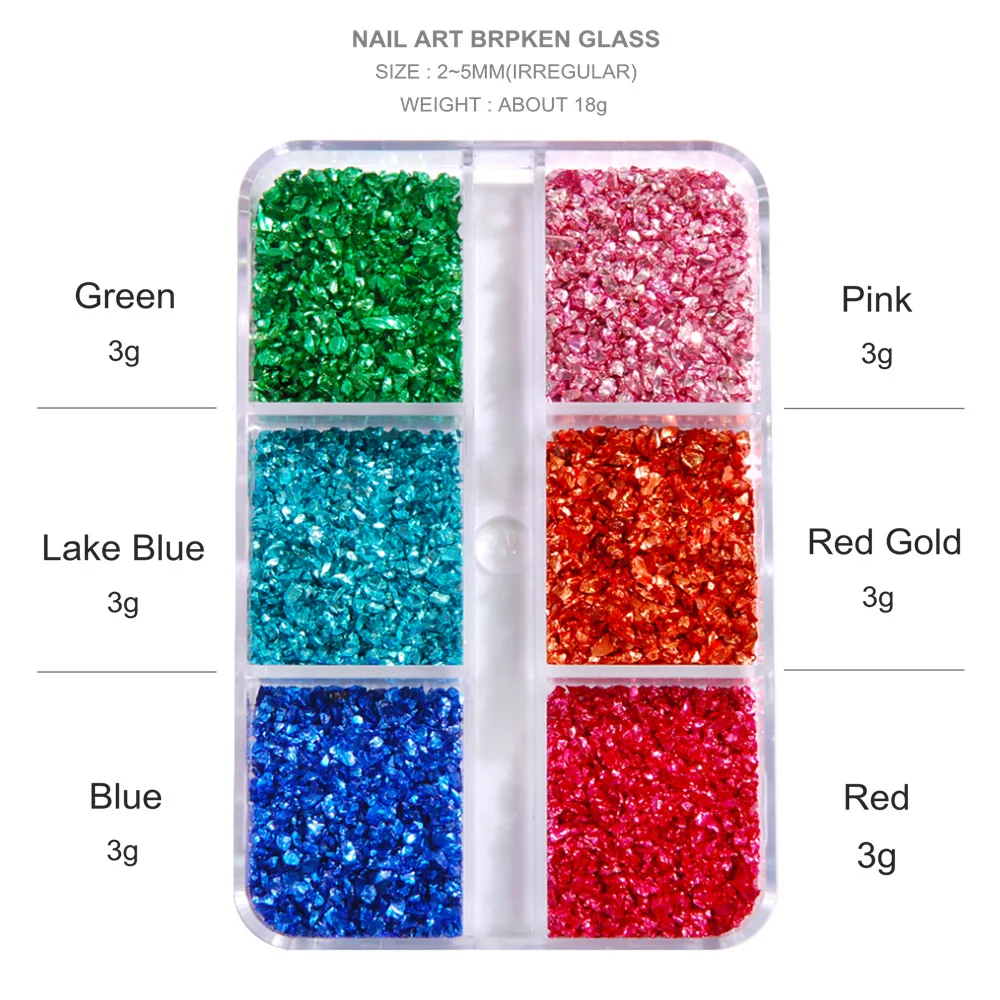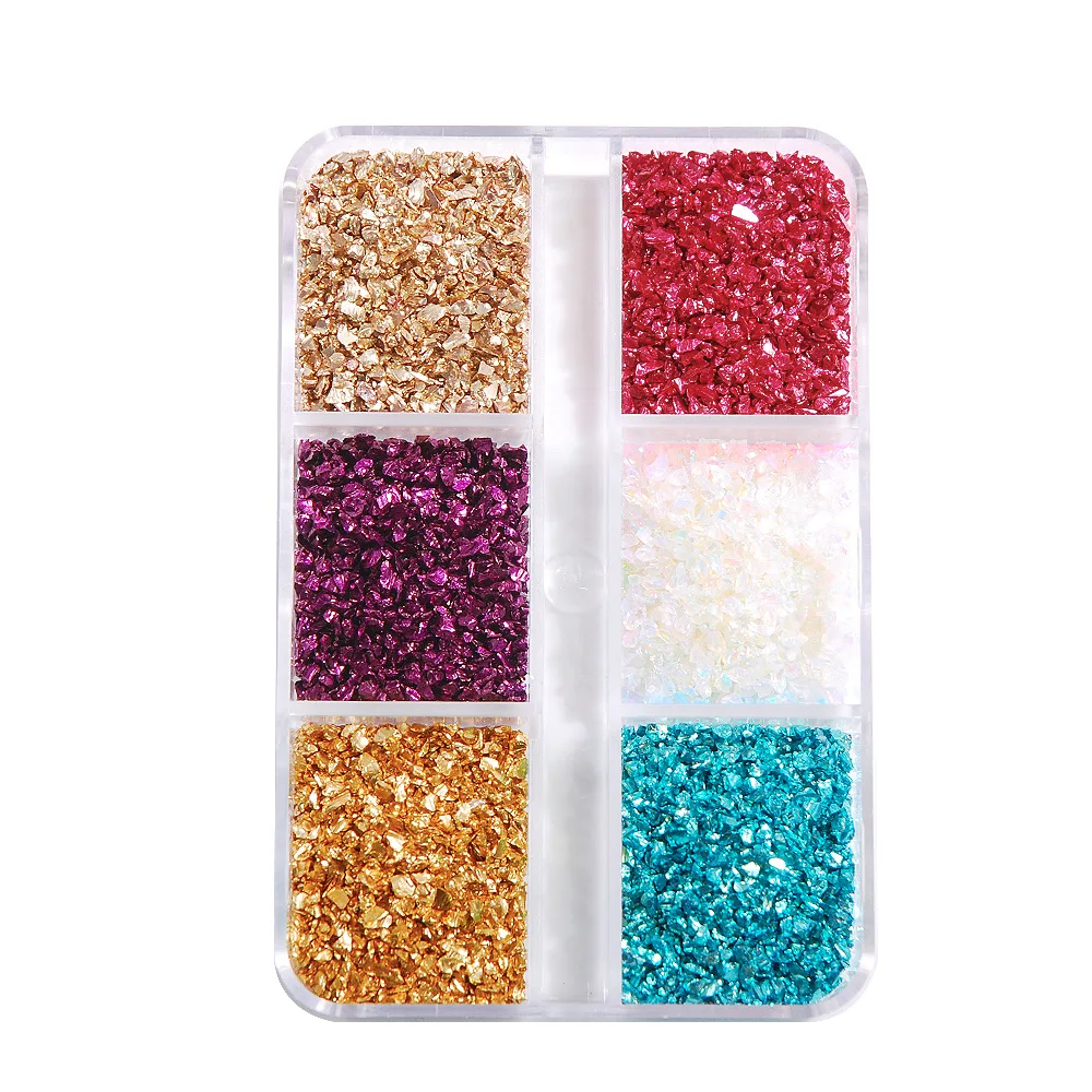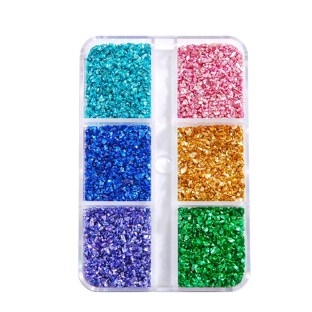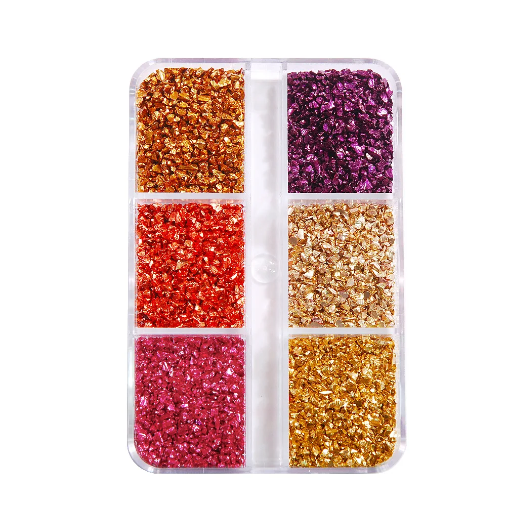VDD 1 коробка, 6 ячеек, красочные стеклянные камни, разбитый минерал, хрусталь сделай сам, наполнение сыпучим песком, нерегулярный дизайн ногтей, гравий, материал