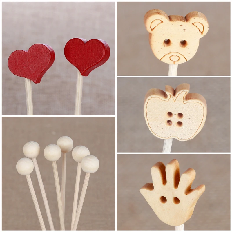 Деревянные палочки для ароматерапии, 1050 шт., красное сердце, медведь, яблоко