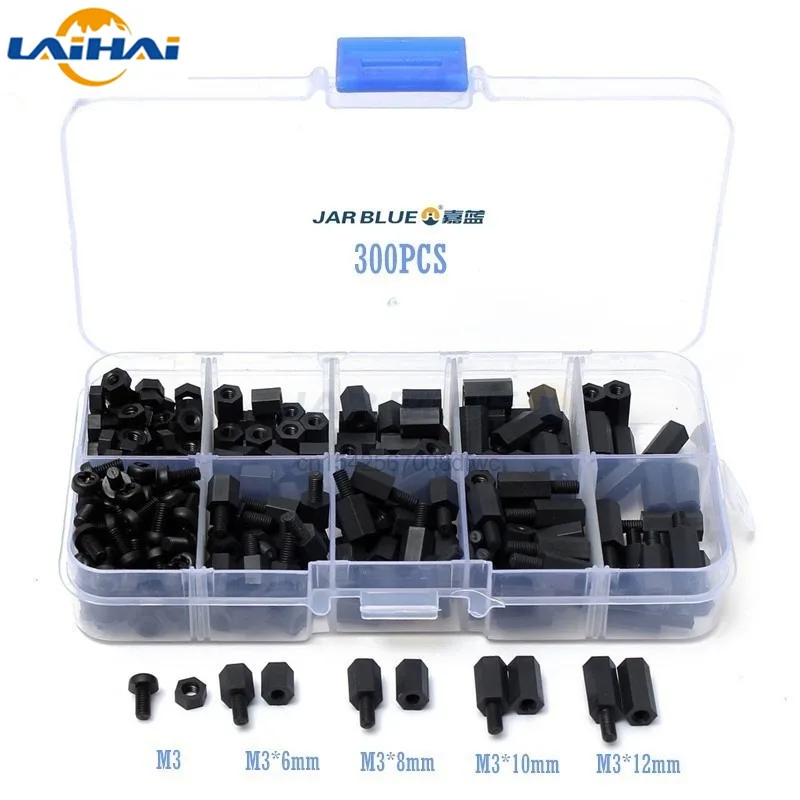 300 шт. M3NH1 M3 нейлоновый винт белыйчерный шестигранный нейлоновый промежуточный стопор стойка с плоской головкой нейлоновые пластиковые шаговые винты гайки