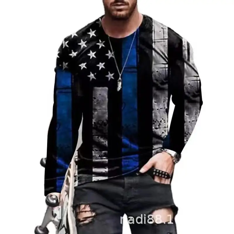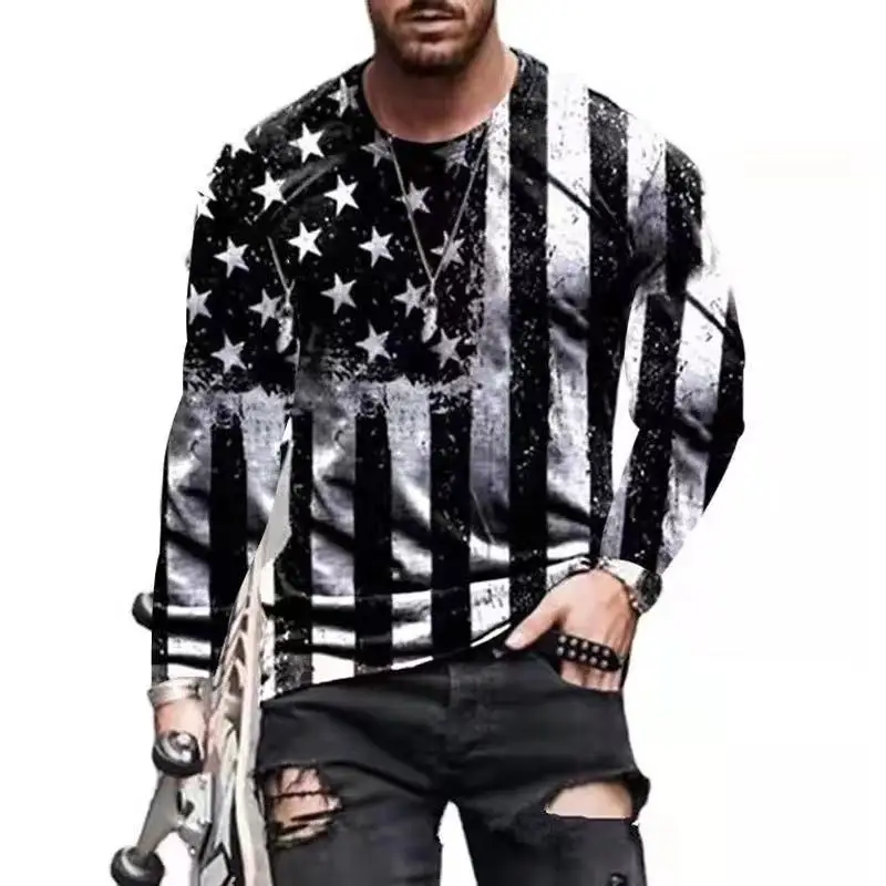 Футболка мужская с длинным рукавом, повседневная хлопковая рубашка с 3d принтом США, Свободный Топ с флагом в европейском и американском стиле, Свитшот оверсайз, 5xl, зима