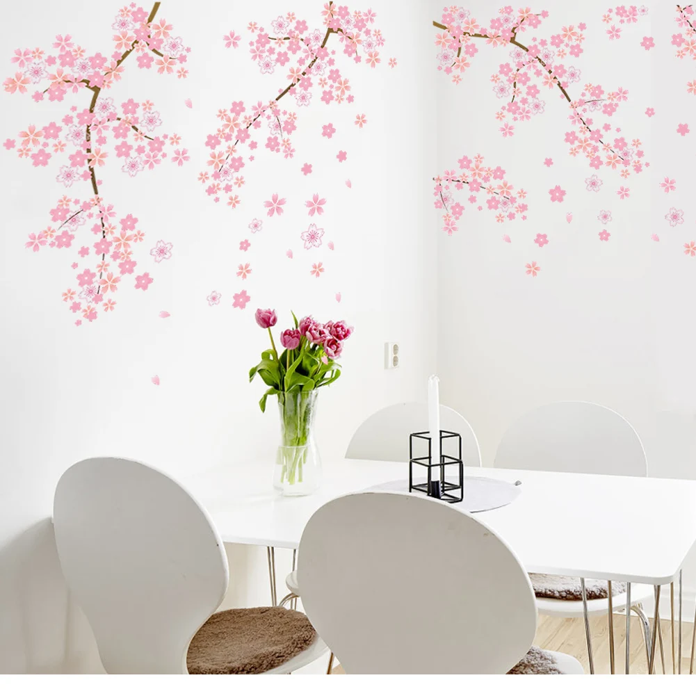 Романтическая Настенная Наклейка розового цвета с цветком вишни, Вишневое дерево для спальни, гостиной, задний фон, Настенная Наклейка