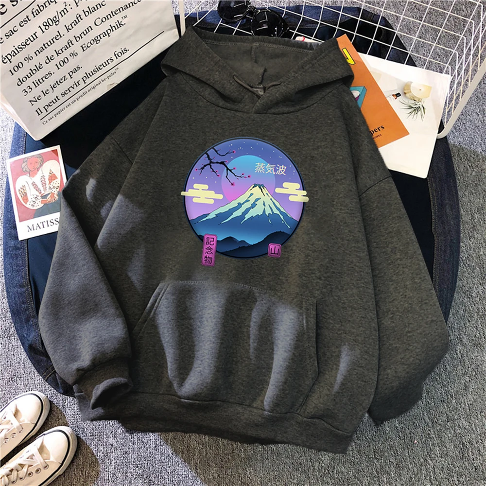 Мужская толстовка с капюшоном, в японском стиле, с принтом горы Фудзи