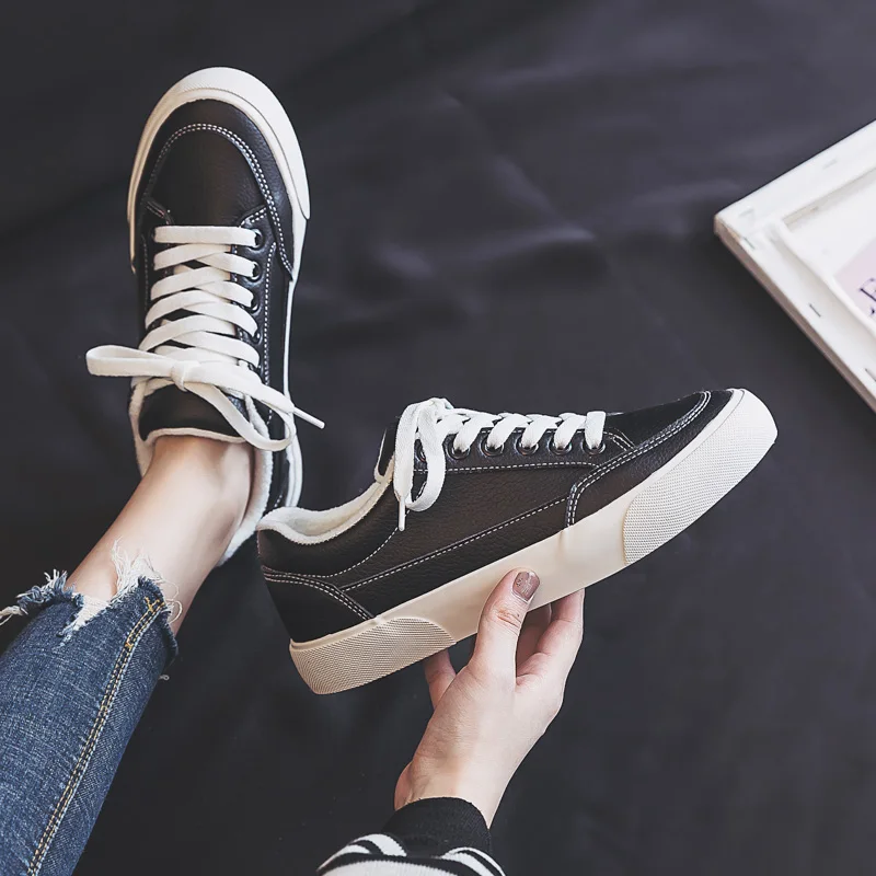 Кеды женские из вулканизированной кожи, кроссовки на плоской подошв...