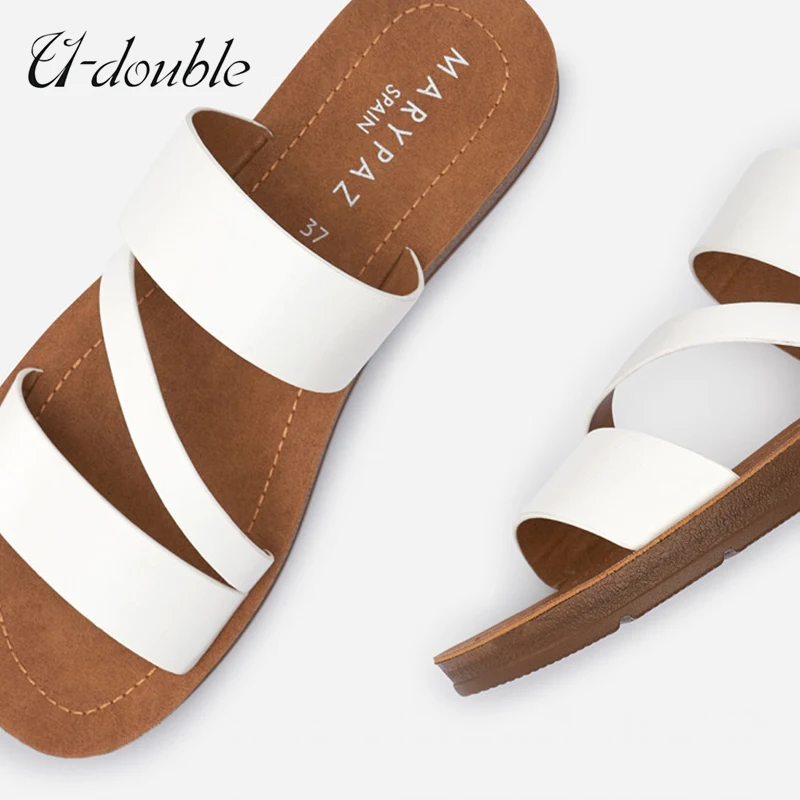 U-DOUBLE; Летняя женская повседневная обувь; Тапочки в римском стиле; Сандалии с открытым носком на толстой подошве в стиле ретро; Пляжные шлепанцы без задника; Фирменный дизайн