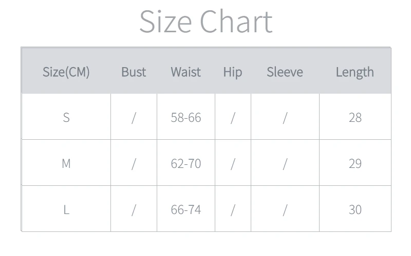 Примечание:1. Пожалуйста, строго следуйте таблице размеров, чтобы выбрать размер. Не выбирайте напрямую в соответствии с вашими привычками.2. Размер может отличаться на 2-3 см из-за ручного измерения. Пожалуйста, обратите внимание при измерении.3. Если вы все еще не знаете, как выбрать правильный размер для себя, пожалуйста, свяжитесь с нами!