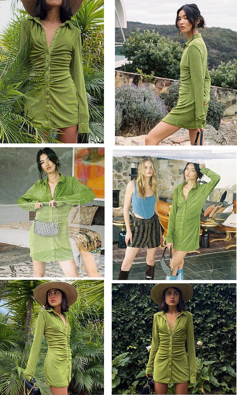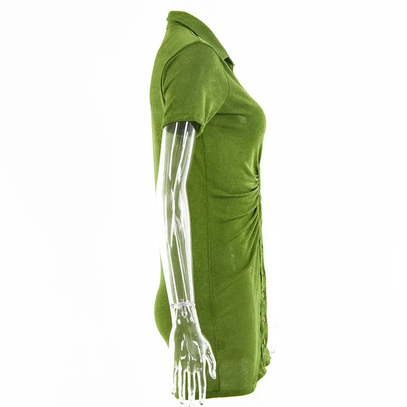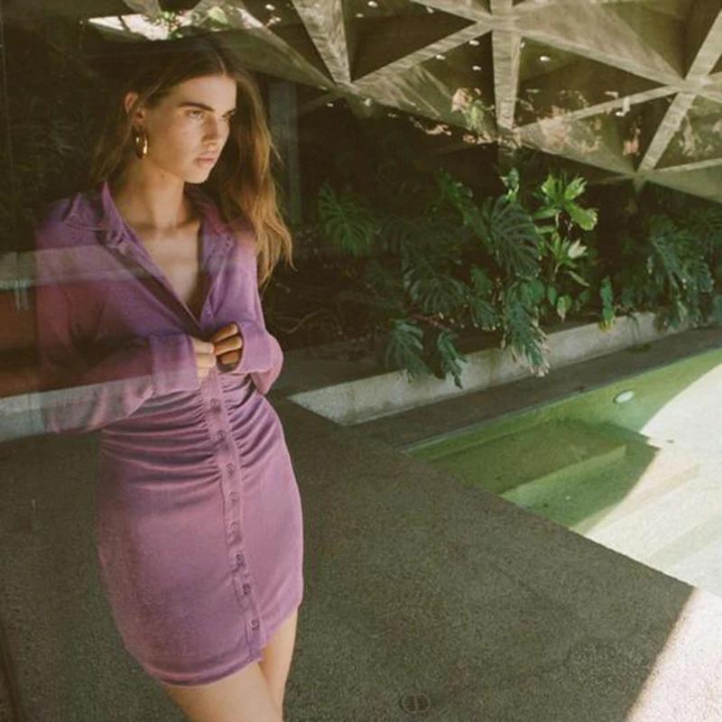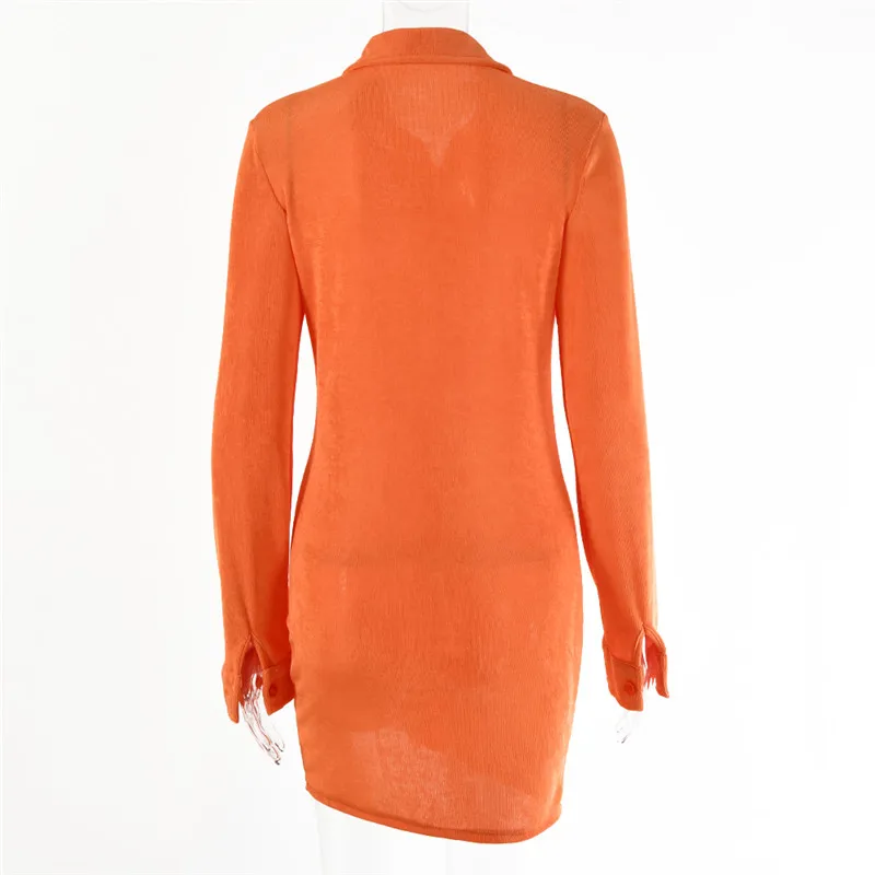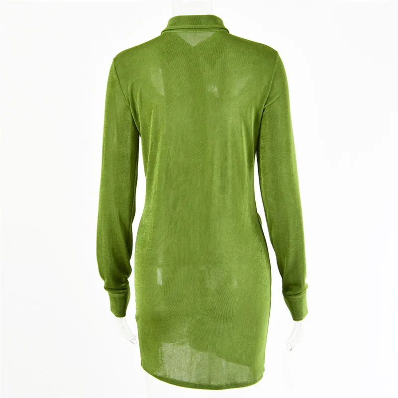 Женское мини-платье на пуговицах, с отложным воротником и длинным р...