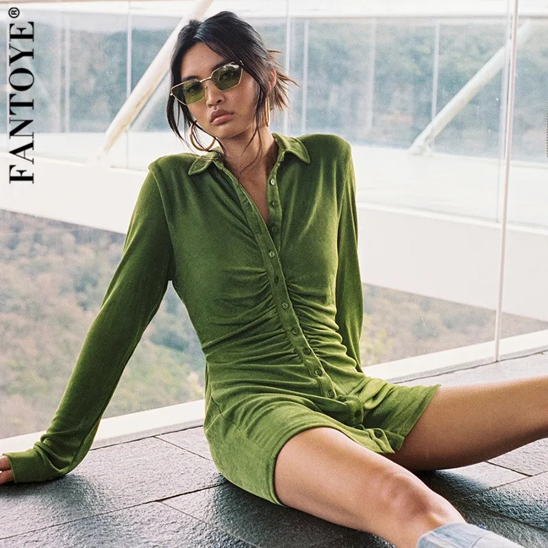 Женское Плиссированное мини-платье FANTOYE, с отложным воротником, ...