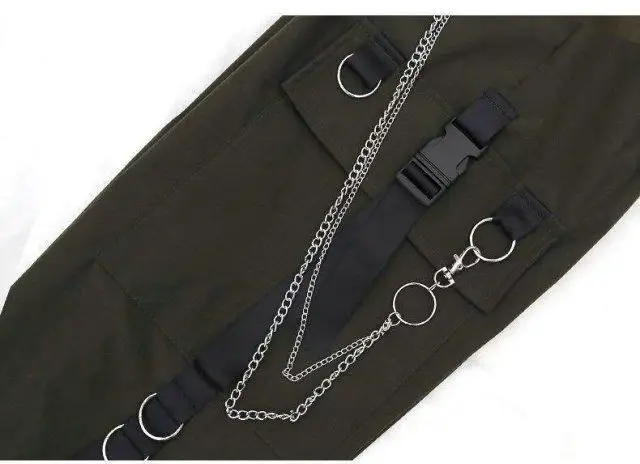 Брюки-карго женские, черные, в готическом стиле, с цепочкой, со съе...