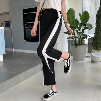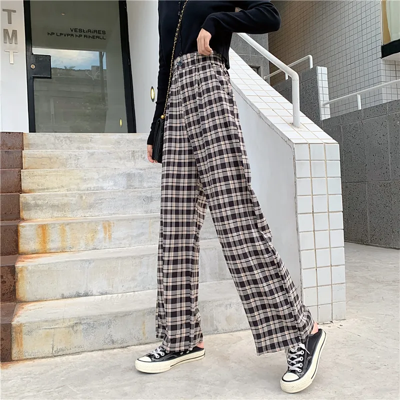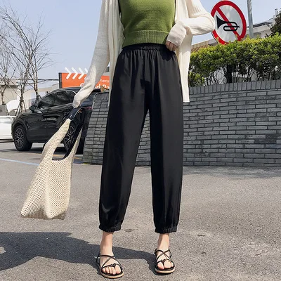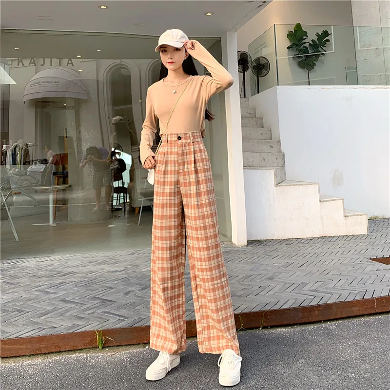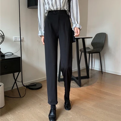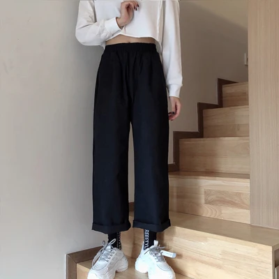 Женские прямые широкие брюки в стиле ретро, однотонные повседневные длинные брюки с высокой талией в Корейском стиле, весна 2021