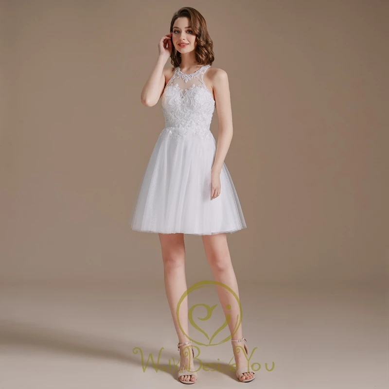 Современные свадебные платья 2022 в стиле бохо, блестящее Тюлевое кружевное платье с аппликацией из бисера, короткое пляжное платье невесты с открытой спиной для невесты
