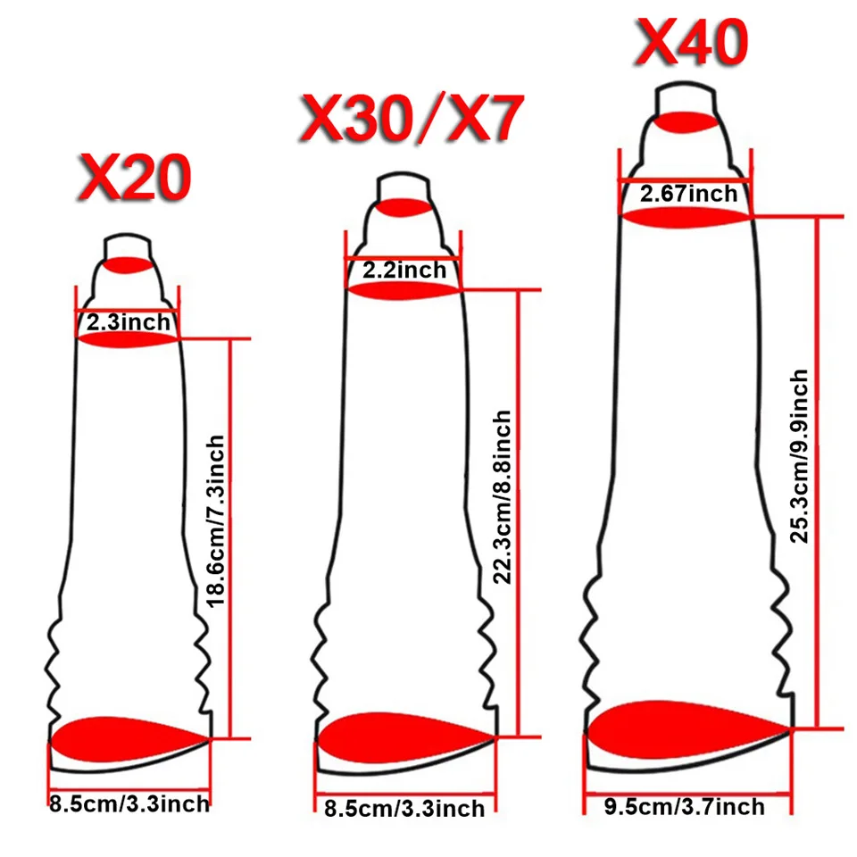 X20 насос: 1,96 дюйма * 7,48 дюйма (подходит для эрекции полового члена длиной менее 15 см)X30 насос: 1,96 дюйма * 8,66 дюйма (подходит для эрекции пениса длиной более 15 см и менее 18 см)X40 насоса: 2,56 дюймов * 9,84 дюймов (подходит для увеличения пениса длина больше, чем 18 см и менее 22 см)