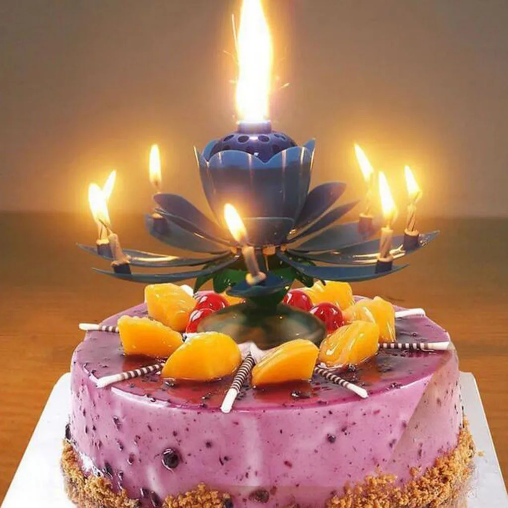 Музыкальная свеча с двойным цветкомЦветы день рождения торт плоский вращающийся электронный