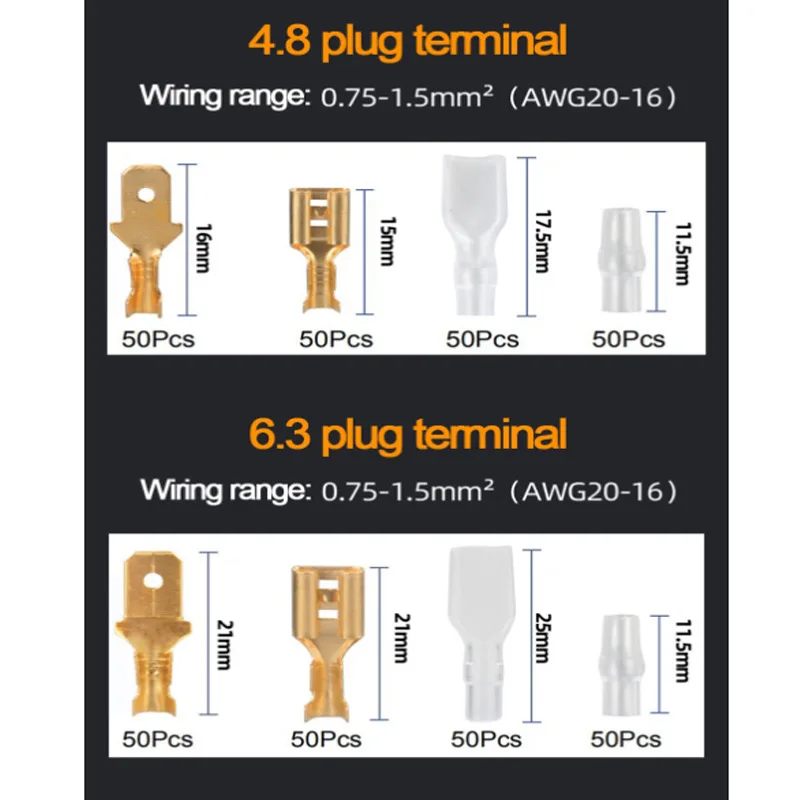 150480600 шт. изолированный Штекерный соединитель для проводов 2,84,86,3 мм обжимные клеммы для электрических проводов лопатки соединители набор в ассортименте