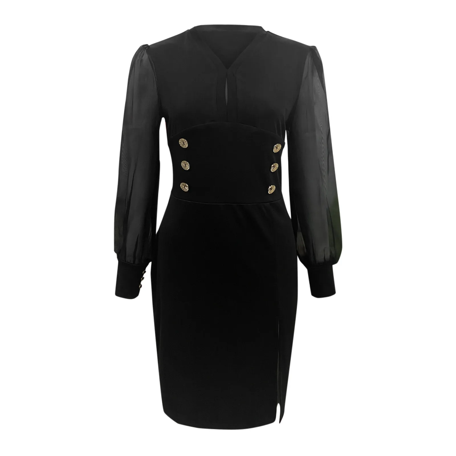 Женское прозрачное Сетчатое платье с длинным рукавом, облегающее блестящее Сетчатое строченное Гламурное Черное мини-платье с круглым вырезом