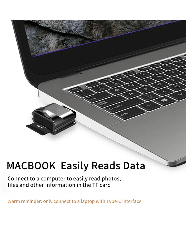 Портативный кардридер USB 2.0 Type C, кардридер Micro TF, металличе...
