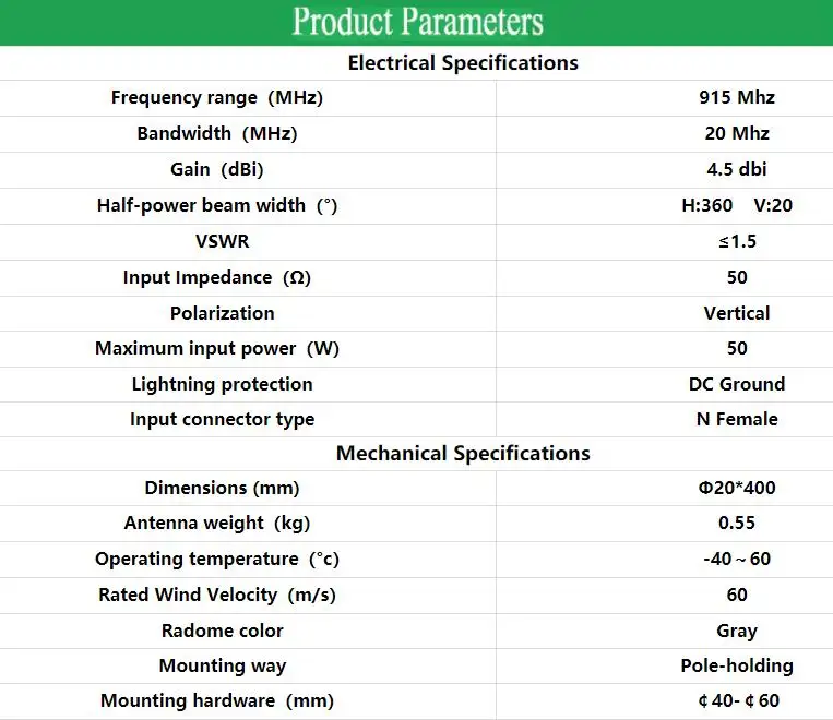 Коэффициент усиления антенны: 4,5 dBiConnector :N-Female Цвет: серый