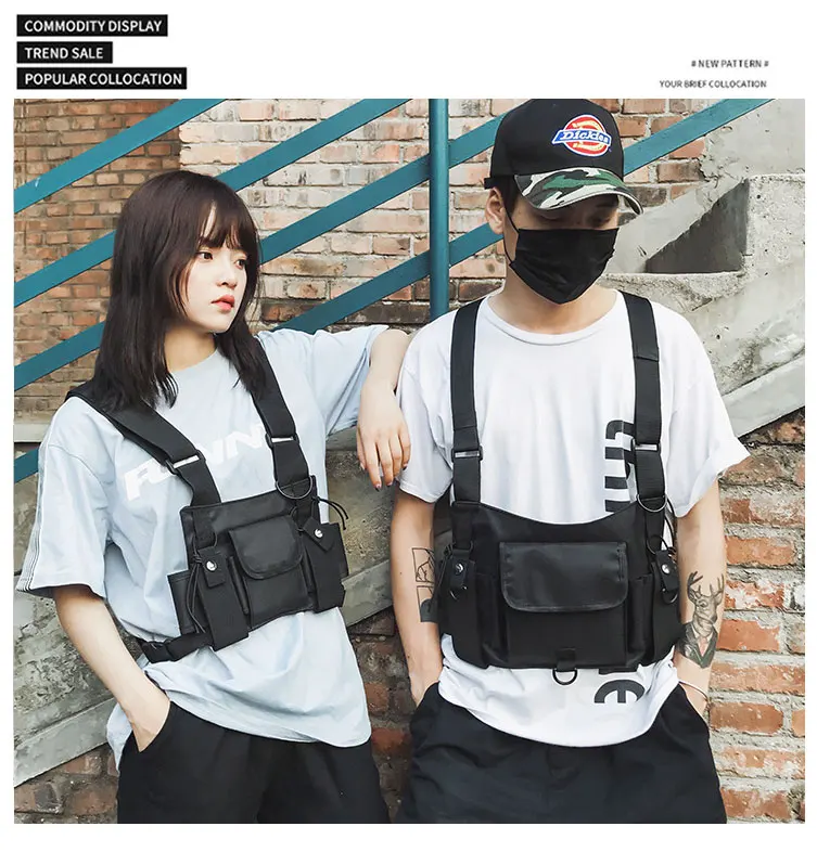 Функциональная тактическая нагрудная сумка модная пуля жилет в стиле хип-хоп Уличная Сумка Поясная Сумка женская черная нагрудная сумка 233