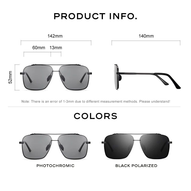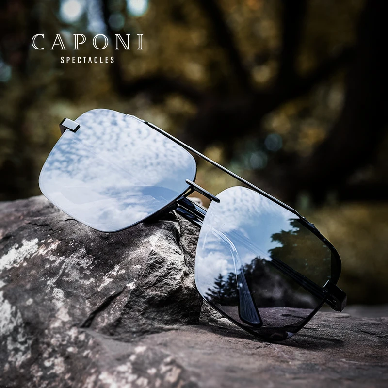 CAPONI Квадратные Солнцезащитные очки для мужчин фотохромные поляри...