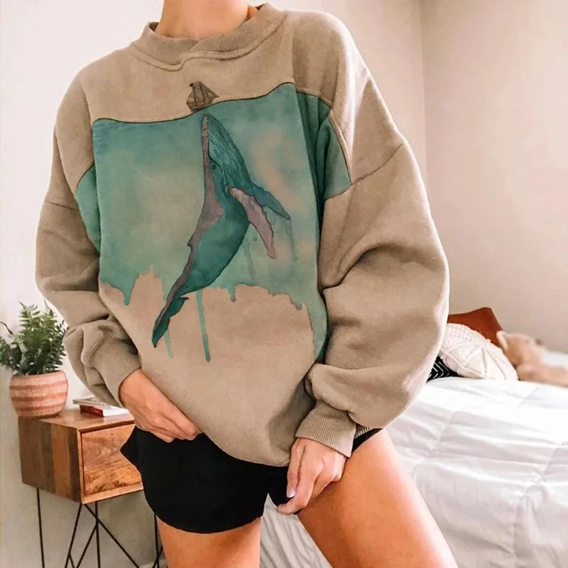 Женская Повседневная Толстовка с принтом рыбы, пуловер с длинными рукавами, блузка