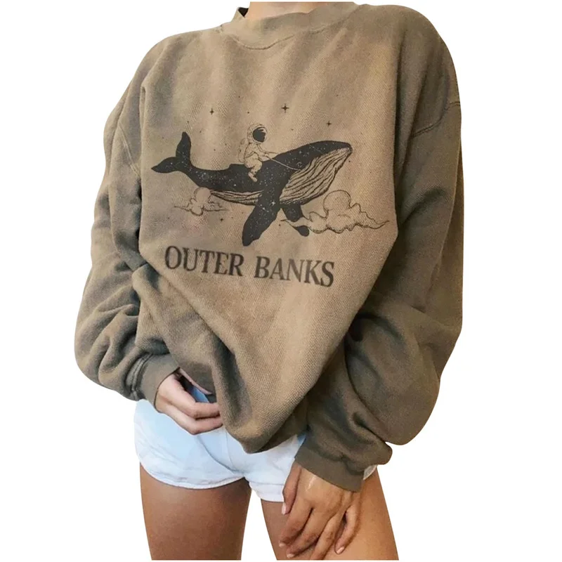 Женские свитшоты с принтом рыбы, винтажный Повседневный Свободный свитшот с длинным рукавом, пуловер, топы, уличная одежда в стиле хип-хоп Харадзюку, толстовки Bts #