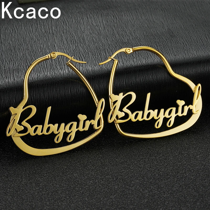 Kcaco персонализированные серьги-кольца из нержавеющей стали, индивидуальные серьги в форме сердца, подарки на день рождения для женщин, ювелирные изделия