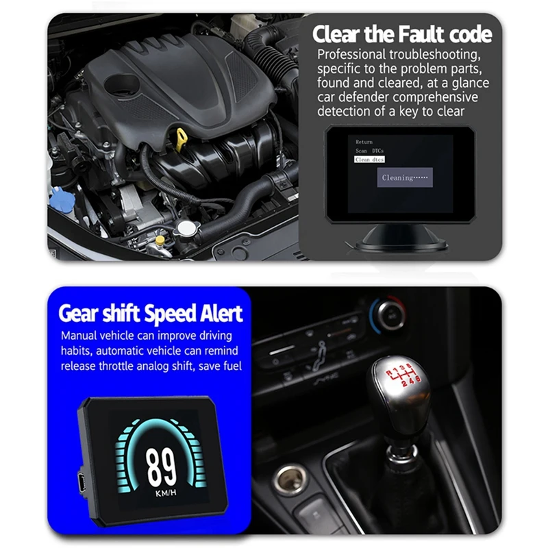 Дисплей на лобовое стекло HUD OBD II 2 P16 температура автомобиля к...