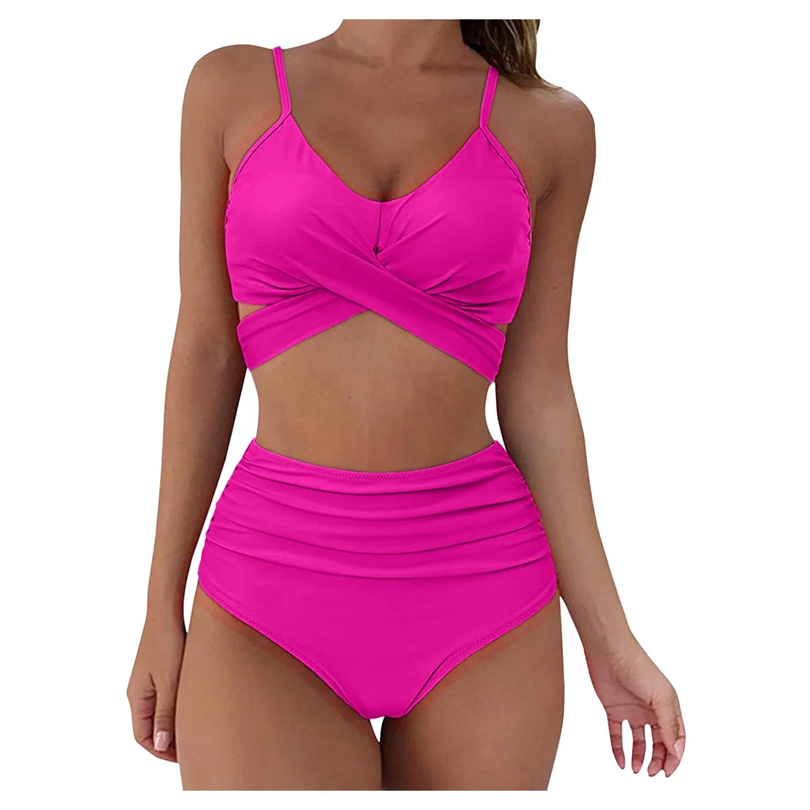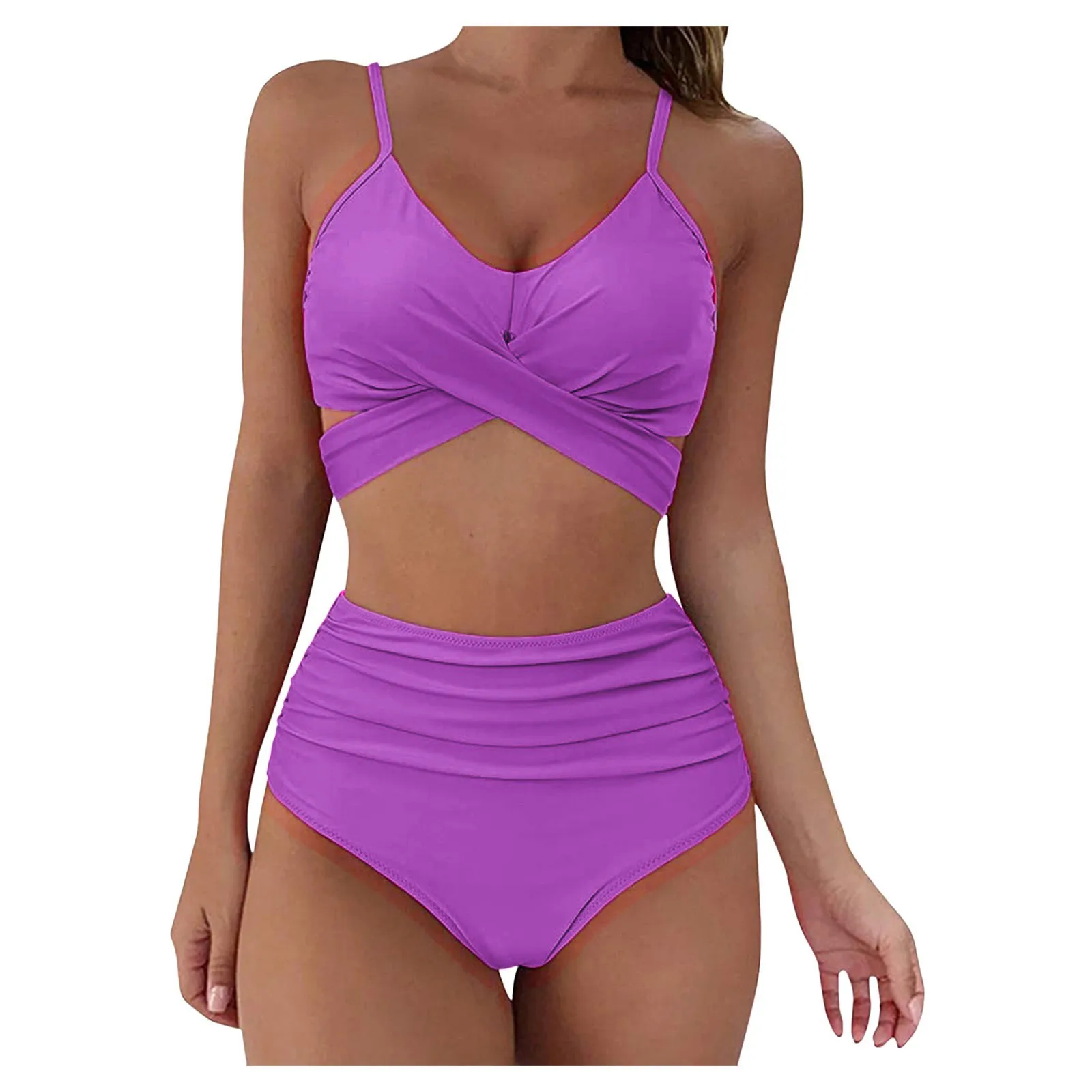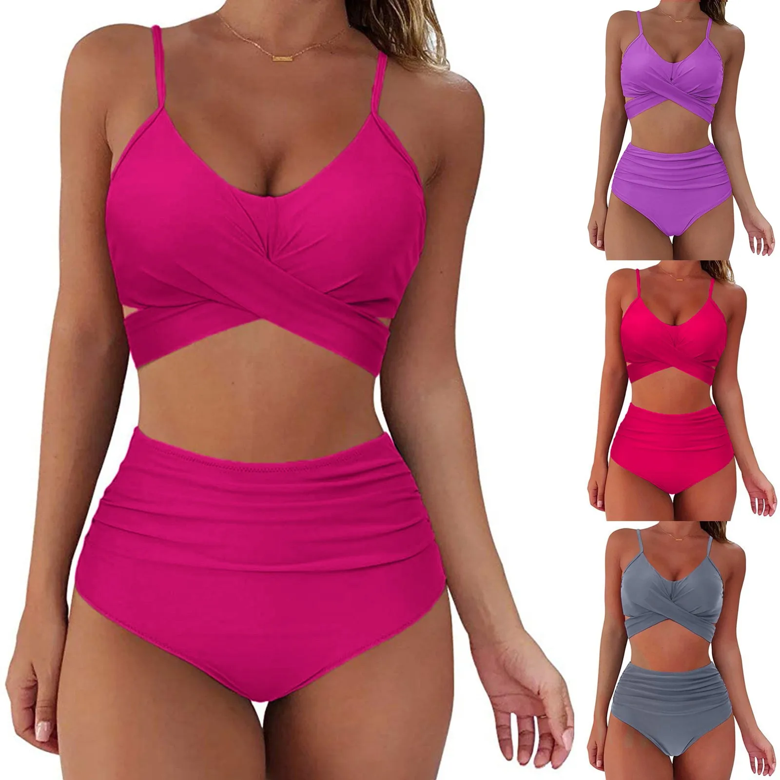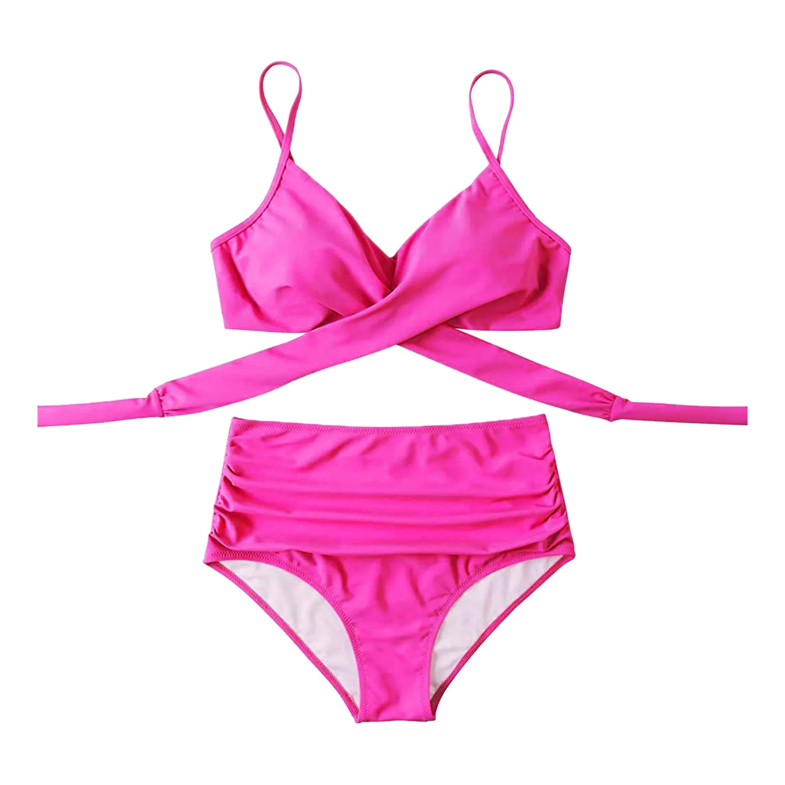 Женские витые купальники, сексуальное Бразильское бикини, бикини с высокой талией, Купальник пуш-ап, комплект из 2 предметов, 2022, новая однотонная пляжная одежда, купальники