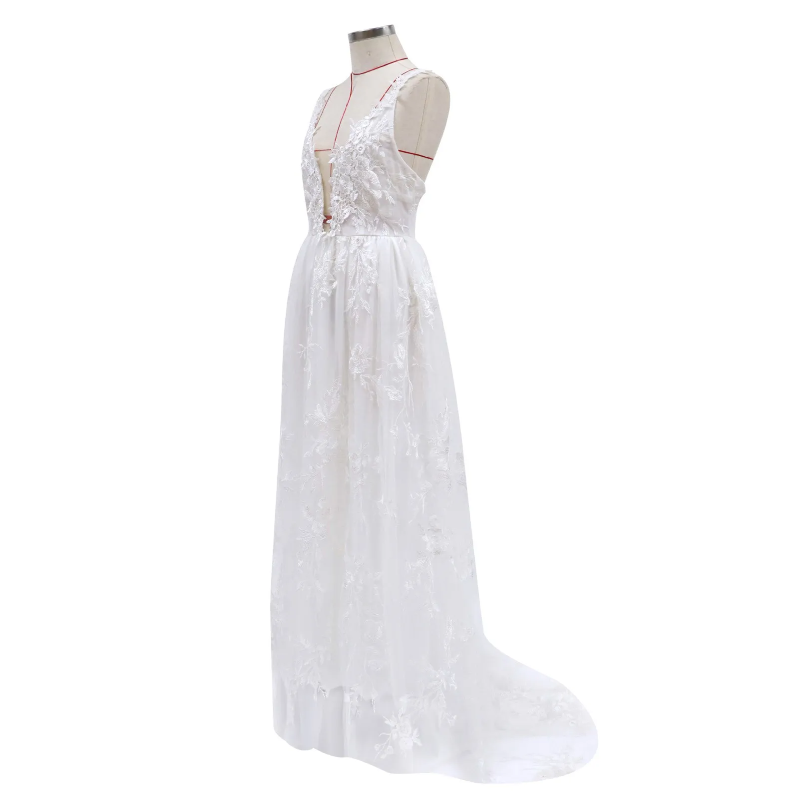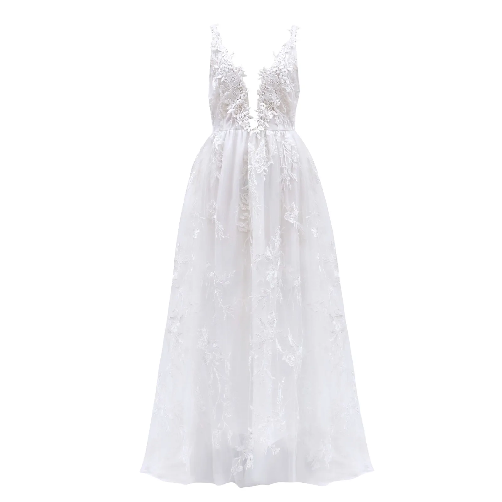 Новинка 2022, элегантное Женское кружевное платье, сексуальное свадебное платье на бретельках с глубоким V-образным вырезом, вечернее платье с вышивкой, Женское платье