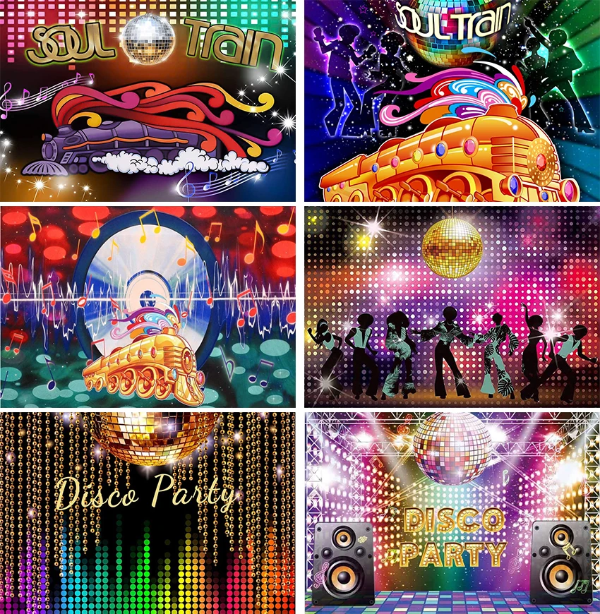 Тема души поезд фотография Фон 70-х и 80-х дискотека танцы Выпускной вечевечерние НКА украшения неоновые светящиеся фото фон