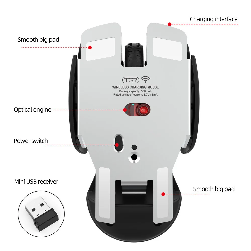 Посылка включает в себя:1 х перезаряжаемая беспроводная мышь1 usb-приемник1 x usb-кабель для зарядки (80 см)Руководство по эксплуатации-1 шт.