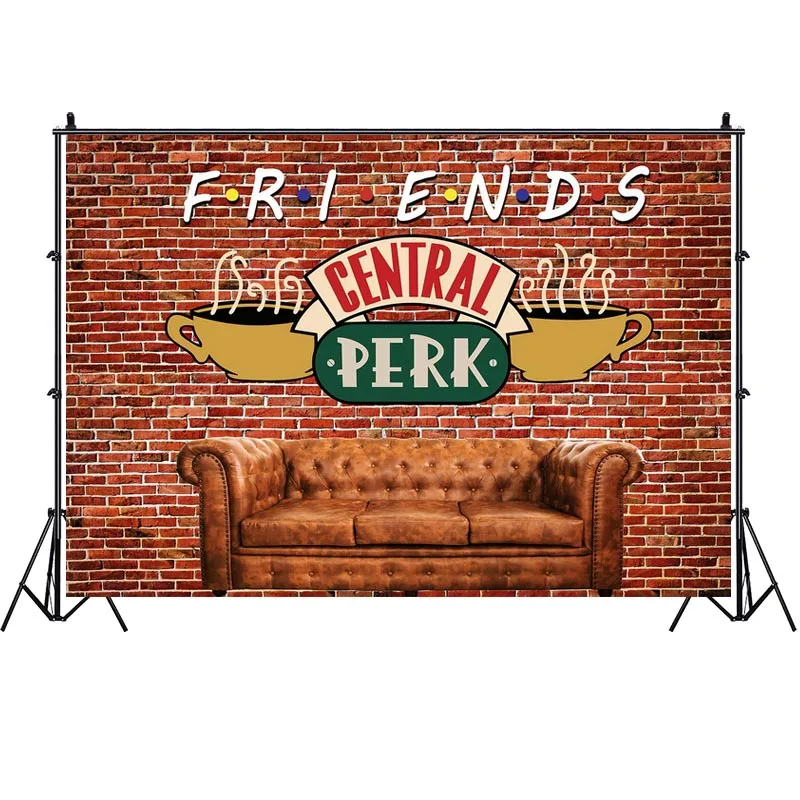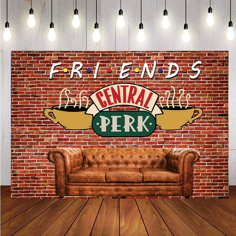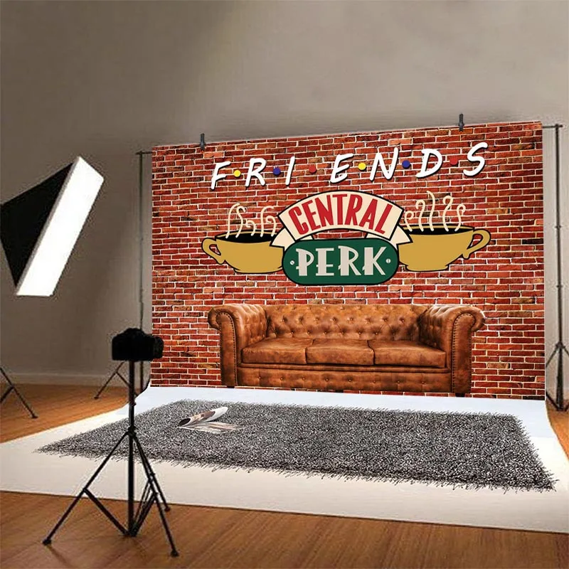 Фотофон друзья центральный Перк красная кирпичная стена Ретро паб диван и кофе день рождения фото фон фотосессия