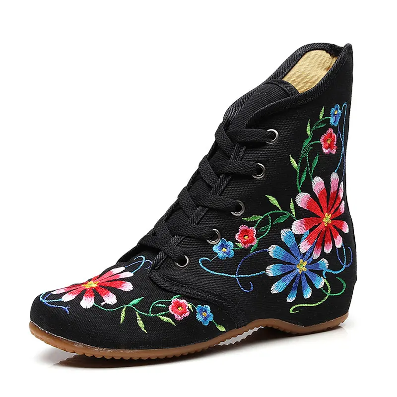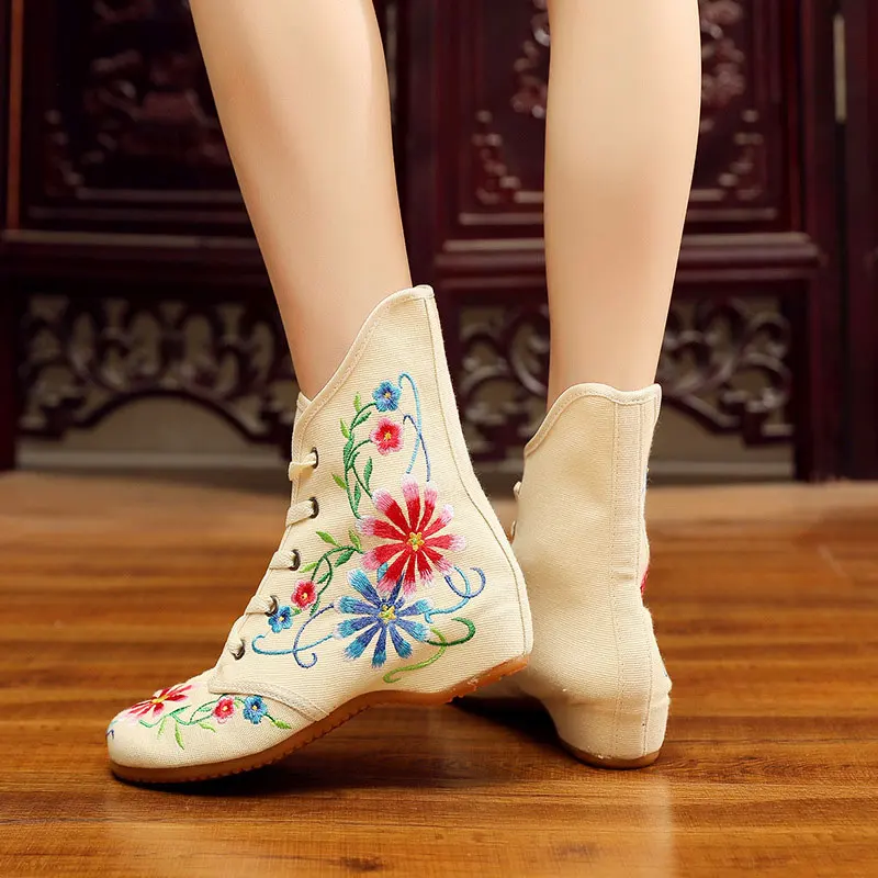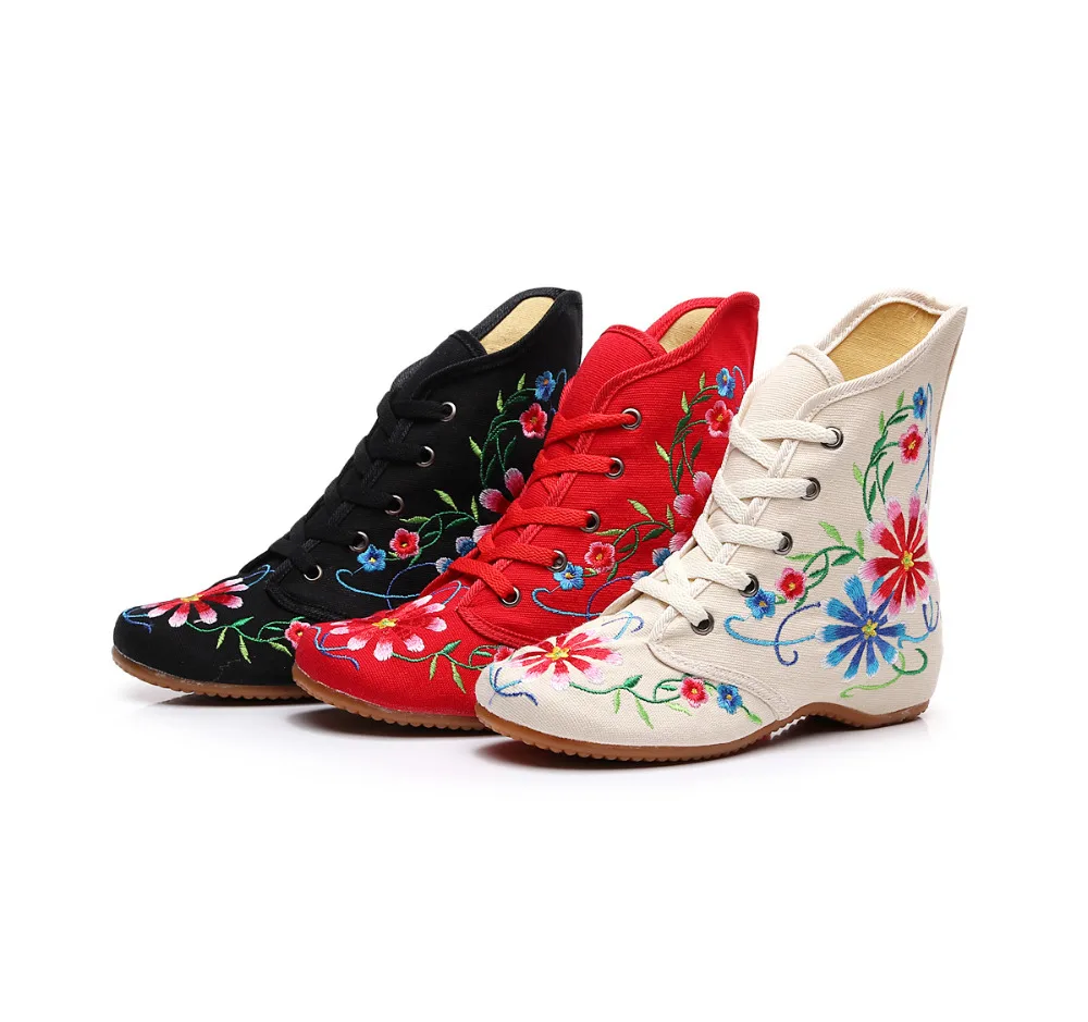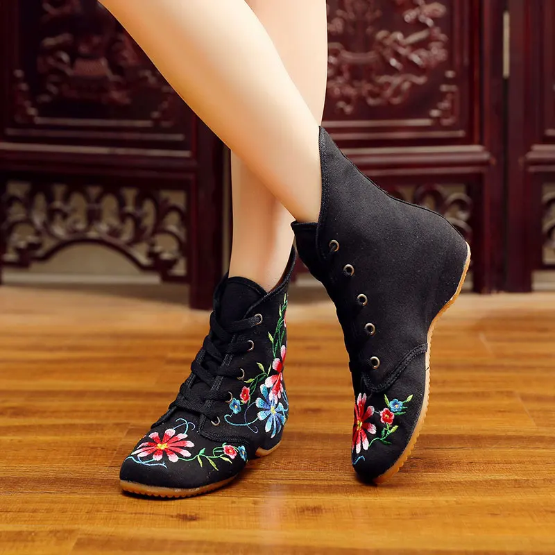 Женские короткие ботинки на шнуровке Crcchenxi в стиле ретро с вышивкой, осенние женские повседневные удобные ботинки с китайской вышивкой