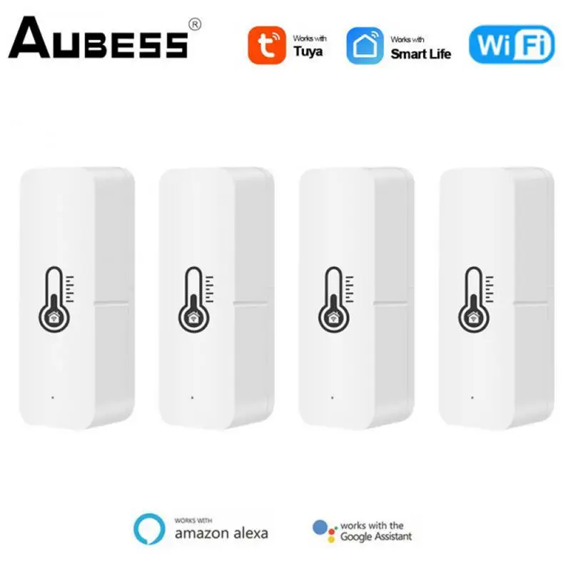 Датчик температуры и влажности Aubess Tuya Wi-Fi, комнатный гигрометр-контроллер для умного дома, приложение для мониторинга для Alexa Google Home