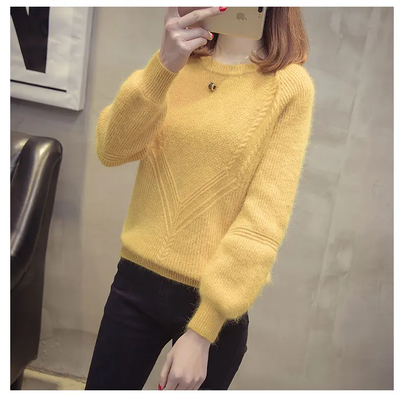 Женские свободные пуловеры с длинным рукавом, свитеры, джемперы, вязаная верхняя одежда, корейские женские теплые свитеры с круглым вырезом, топы, Осень-зима 2019