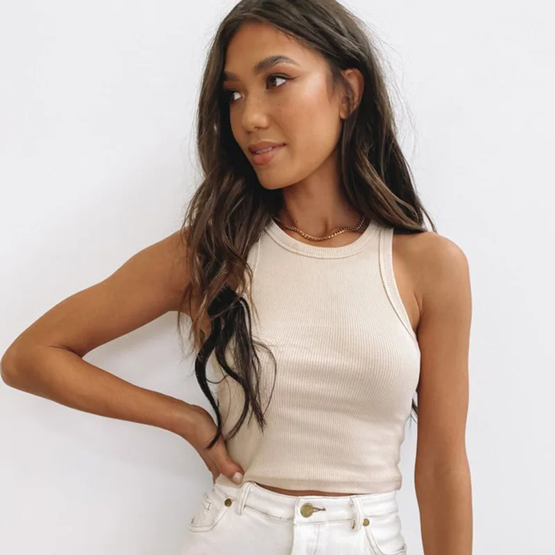 Майка женская трикотажная в рубчик, пикантный укороченный жилет, однотонный топ с открытыми плечами в Корейском стиле Харадзюку, Повседневная летняя одежда