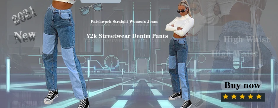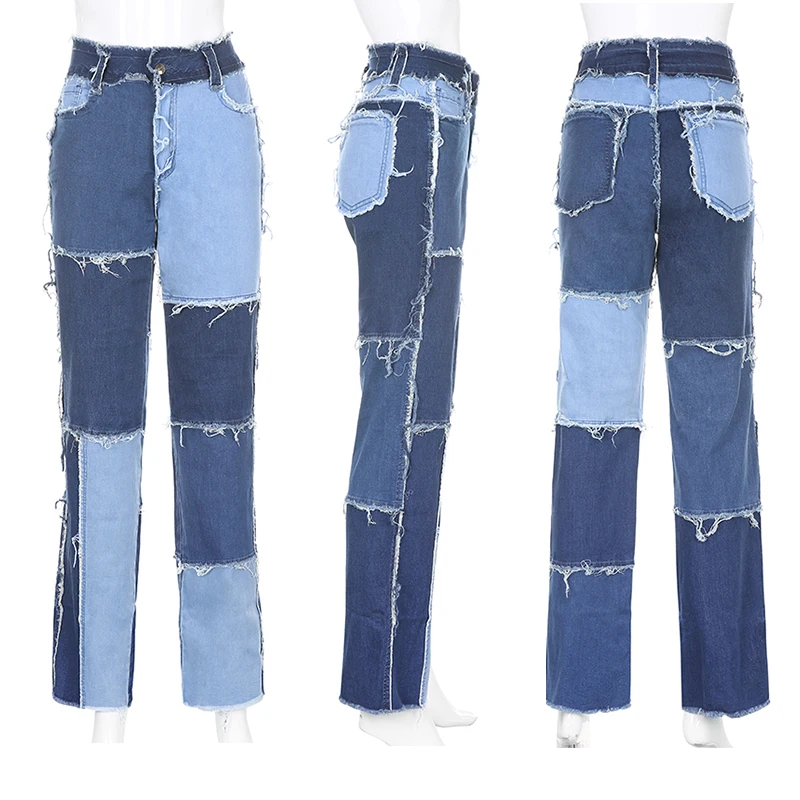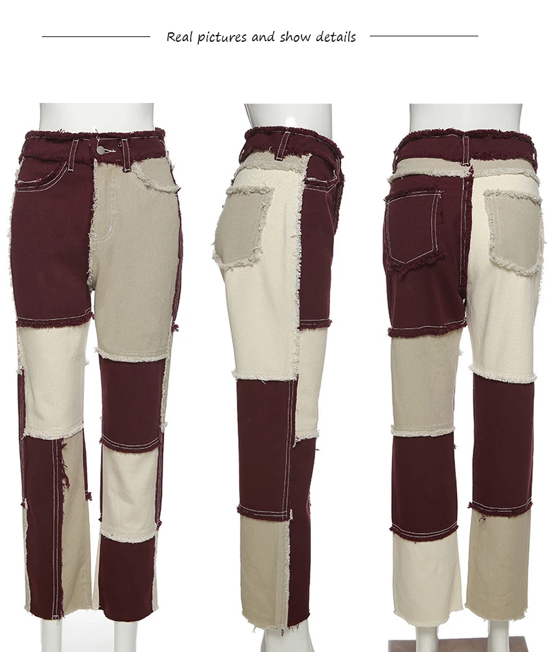 Джинсы женские в ковбойском стиле, уличные повседневные Прямые свободные брюки в стиле хип-хоп, с завышенной талией, в стиле пэчворк, коричневые, на осень